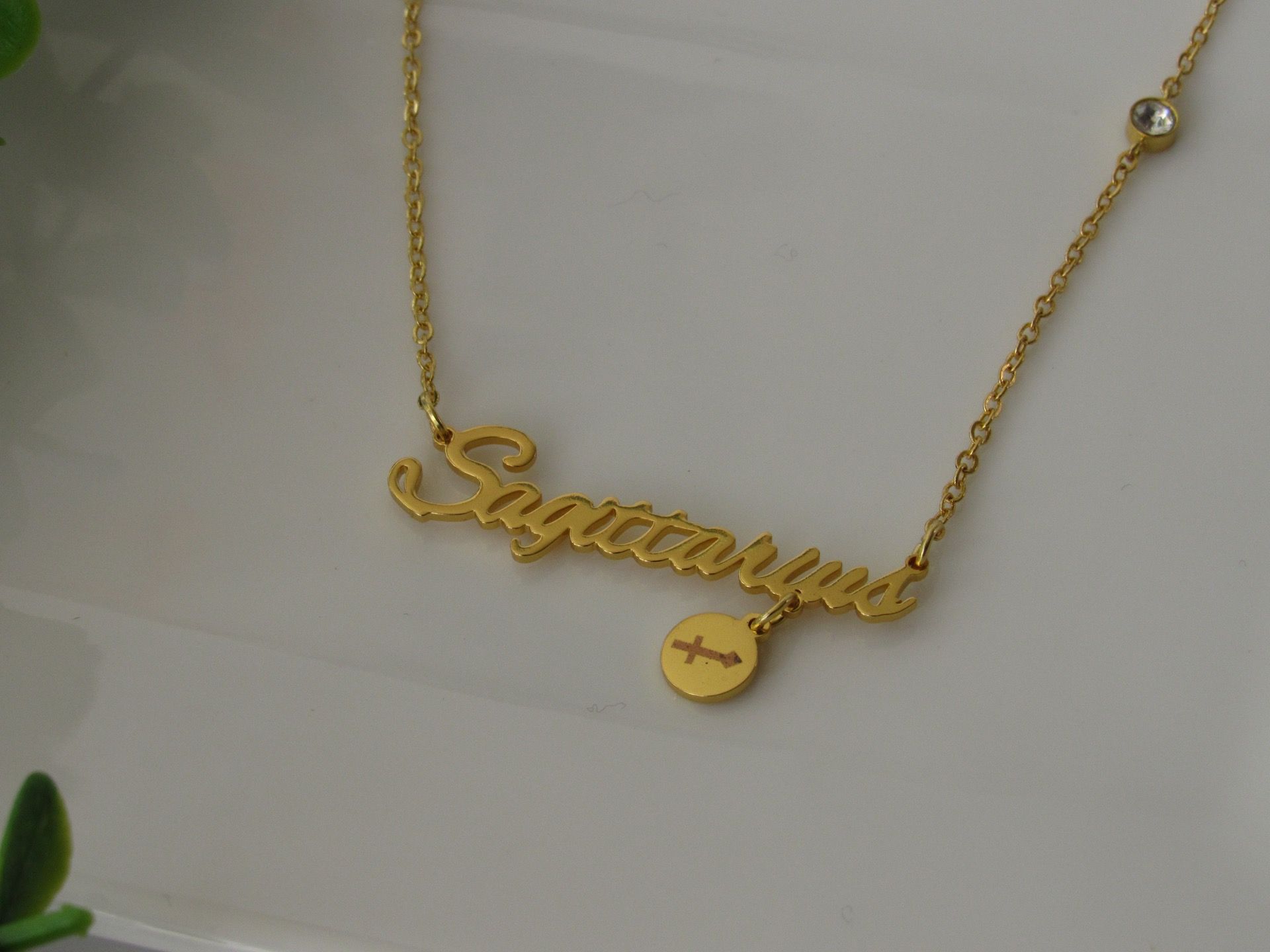 12 Constellation Zodiac Old English Letter Sign Pendant Necklace, Sagittarius