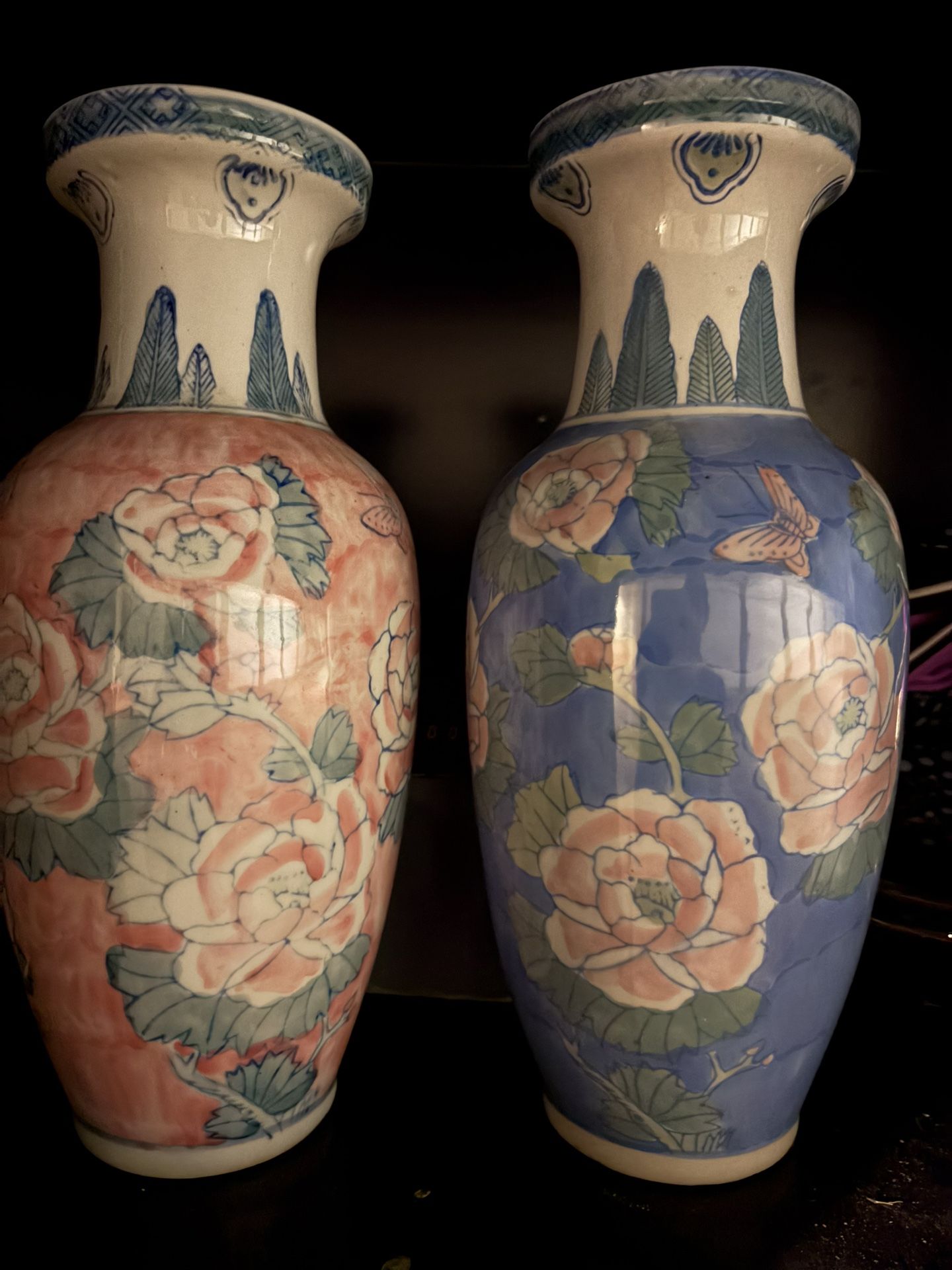 !!!20!!!$$$$ Vintage Chinoiserie butterfly and flower design porcelain vase