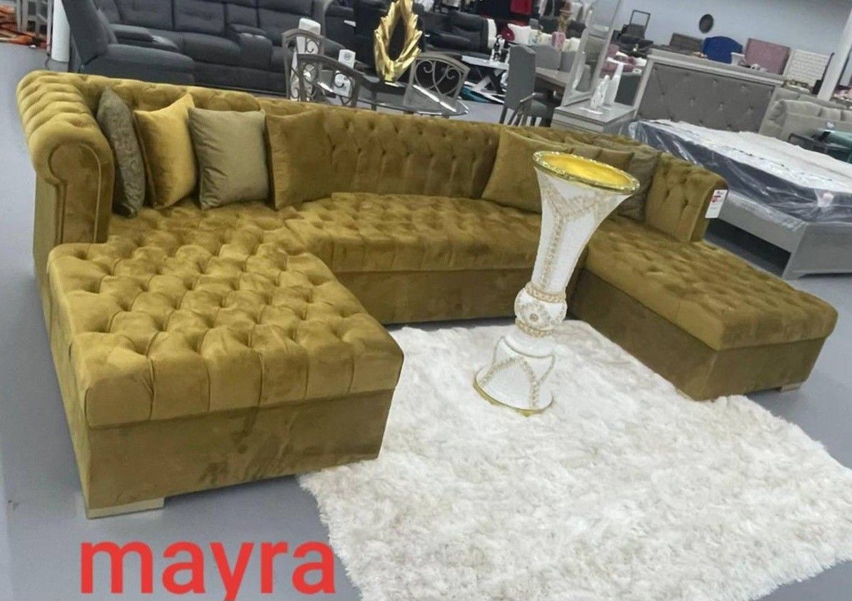 New// Yellow Double Chaise Sectional, Seccional, Couch// Delivery Available