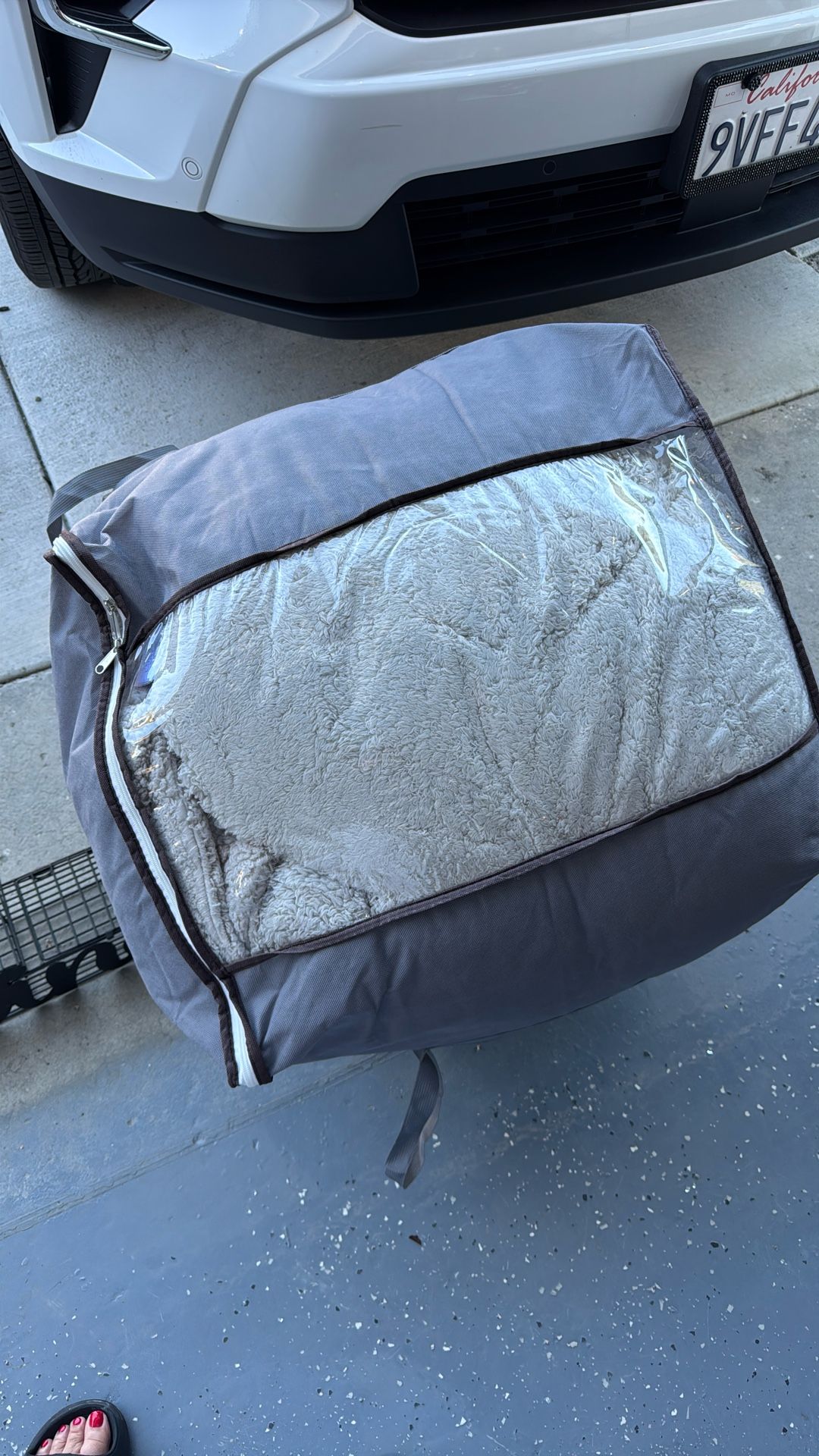 Heavy duty comforter with pillowcases from bed, Bath and beyond blanket is heavy feels weighted. Sizes for a king bed but it’s a little short recommended to put on a queen size bed.