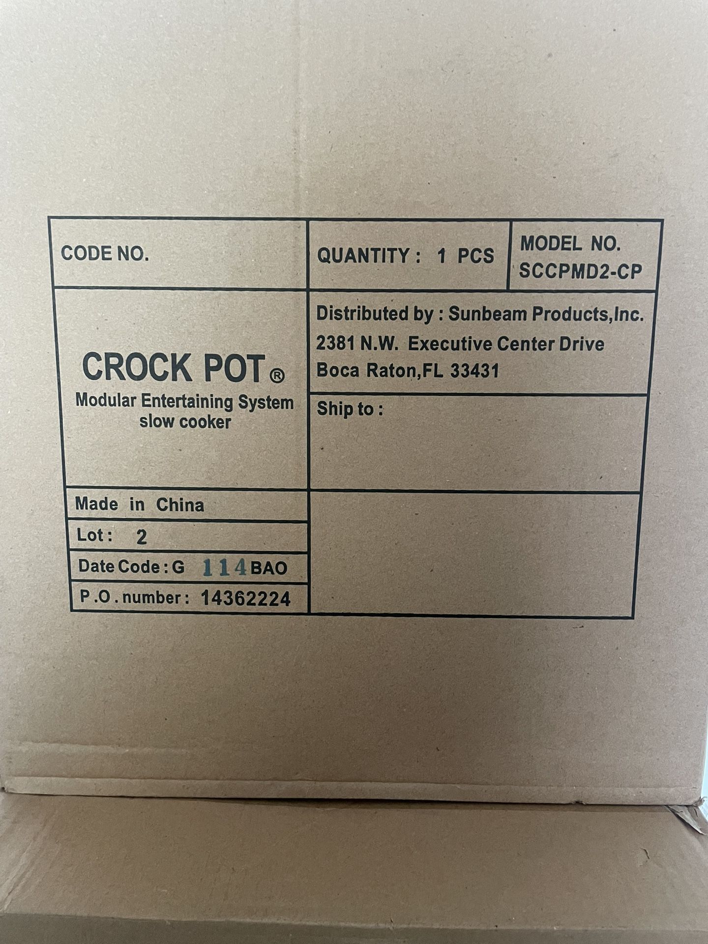 I have two of these in addition, I have one SCCPDM1, a dual 1 Qt Slow cooker. All are new in box and ready for a Thanksgiving or Christmas party. I’m ready to deal on all 3!! Check out my other listings and make an offer on one, two, or all three in matching Copper finish. Elevate your cooking game with this Crock Pot Hook Up Double 1-qt Connectable Entertaining System. With its electric power source and three settings/programs, you can easily cook your favorite dishes in a slow cooker. The system comes with a base, 2 quart oval with a lid, all in a stylish metallic copper finish. This multi-cooker is perfect for entertaining guests or for making meal prep a breeze. The keep warm function ensures that your dishes stay at the perfect temperature until you're ready to serve. Plus, the stoneware dishwasher-safe and glass lids dishwasher-safe components make cleanup a snap. The Crock Pot Hook Up SCCPMD2-CP Metallic Copper slow cooker is a must-have for any kitchen. Make an offer!!
