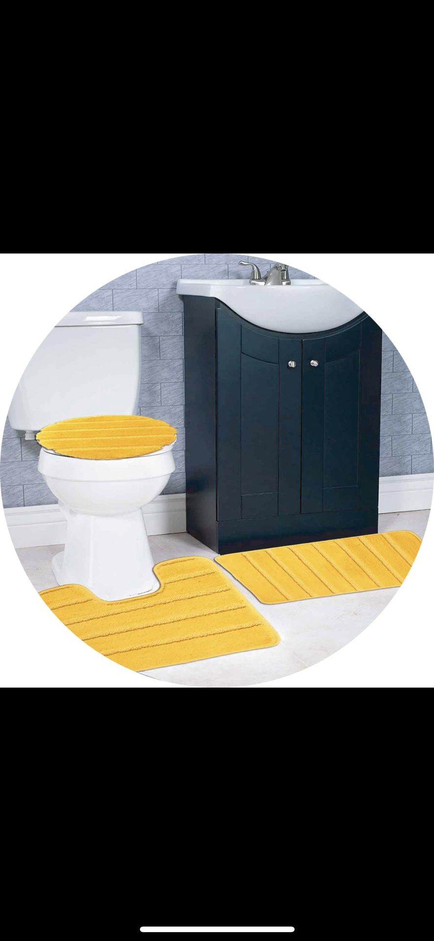 Bathroom mat, contour and toilet seat lid. Available in black, gold, yellow, Sage, navy, burgundy