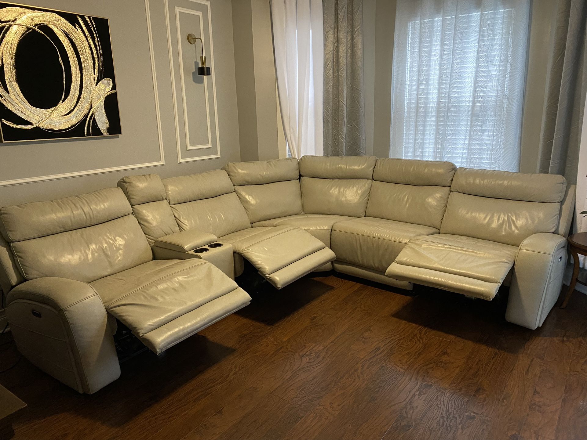 6-piece Leather Power Reclining Sectional with Power Headrests. Material: Top-Grain Leather