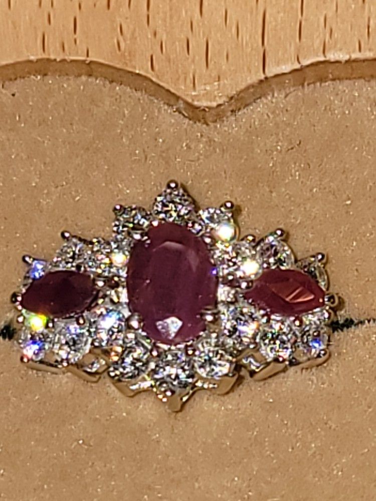 Stunning genuine Ruby & Diamond Cocktail Ring. This is an estate sale ring that is beautiful, with 3 Ruby's and Diamond clusters. (Not CZ) genuine diamonds all VS.