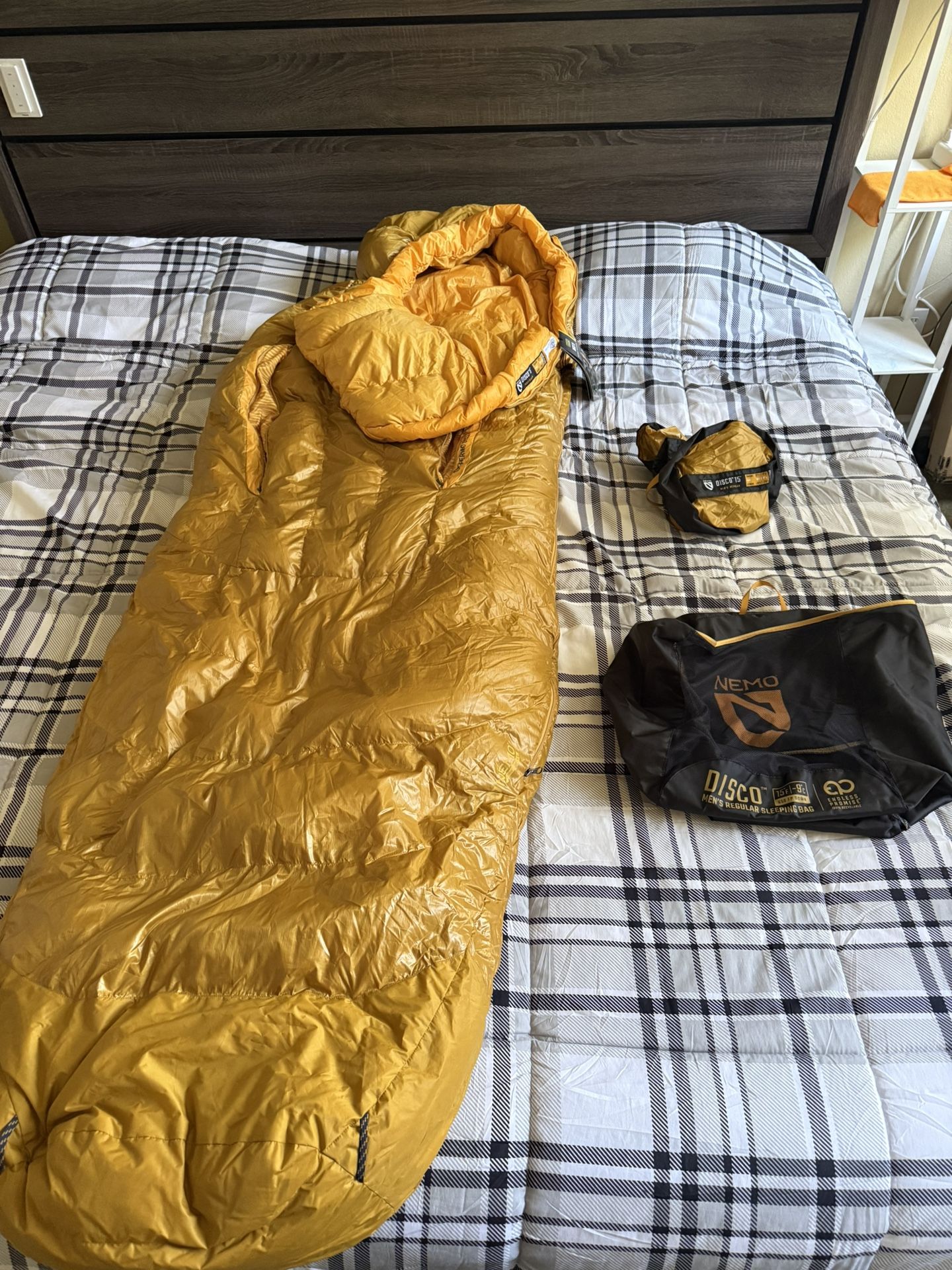 Nemo Equipment Disco 15 degree sleeping bag New, never used, with tag. Includes stuff sack and storage sack. Men’s regular.
