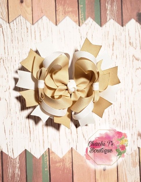 Khaki and white uniform boutique bow
