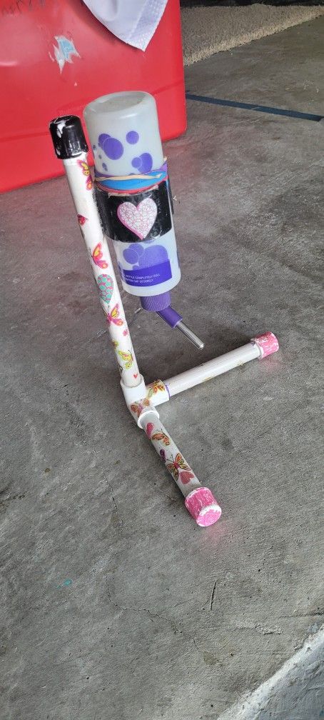 Made by my 88 year old cousin for my 92 year old Mom's pigs..3 years ago. He is making them for some extra cash. This outlived Mom's fur babies, made because the mesh playpen had nowhere to hang a water bottle. Perfect. He sells for $15ea