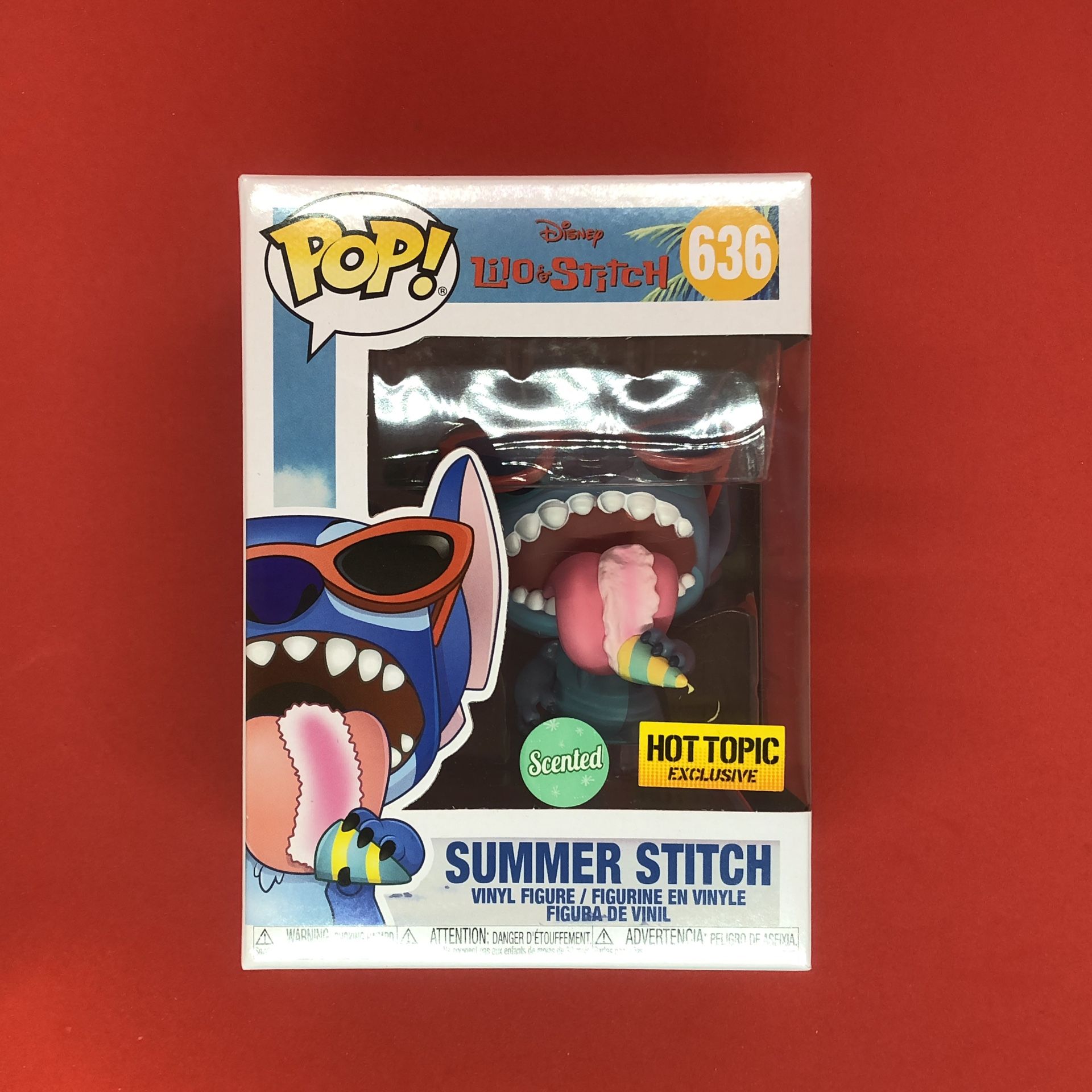 Funko Pop! Summer Stitch Scented Disney Lilo and Stitch Hot Topic Exclusive 636. Item is in good condition as shown in the pictures and will be carefully shipped with bubble wrap.