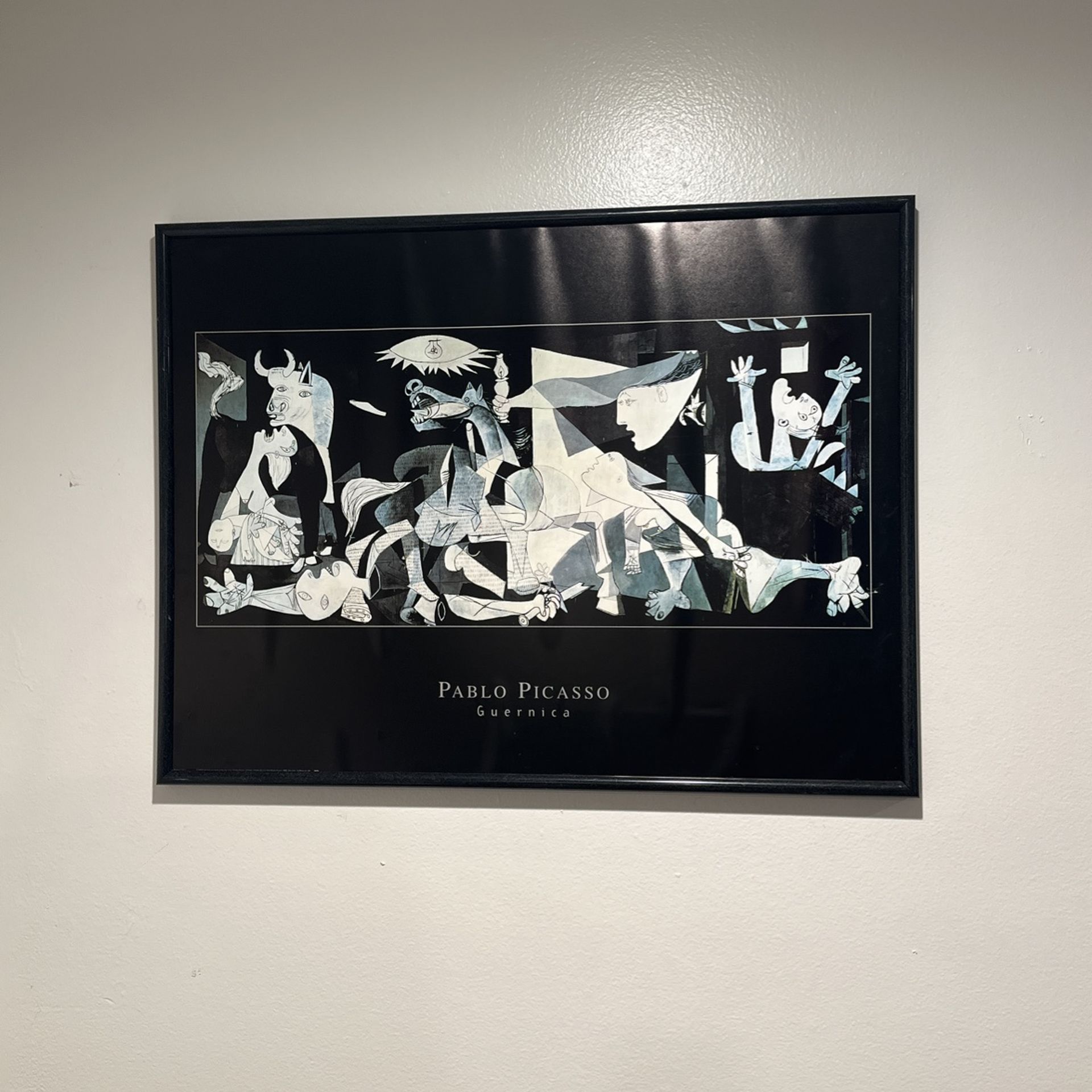 Needa glass or plastic for on top of frame. Super cute print tho! About 2 by 2 1/2 feet!