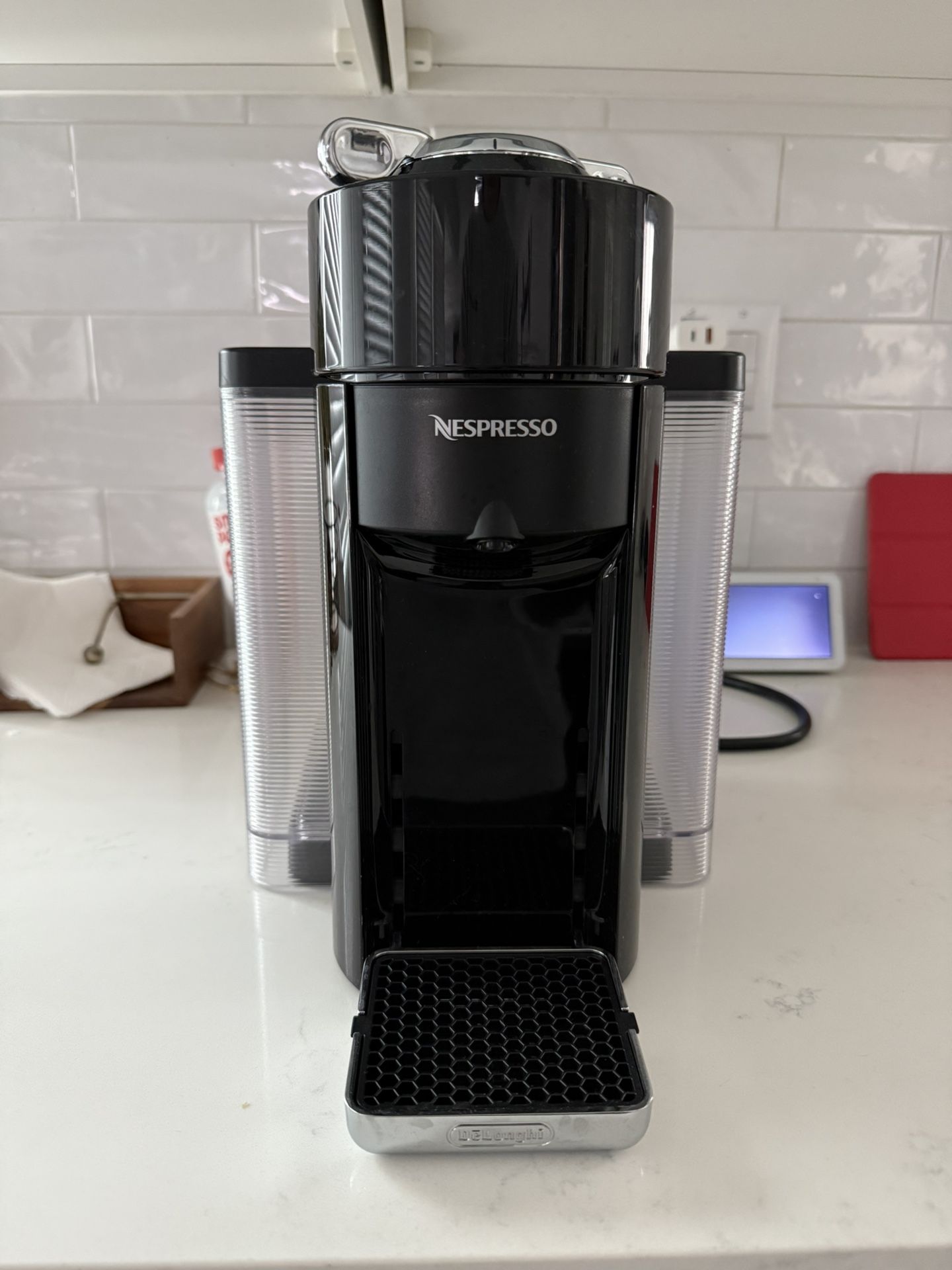 Nespresso Vertuo espresso • SINGLE SERVE COFFEE & ESPRESSO MACHINE: Single serve coffee or espresso at the touch of a button. Innovative programs and features such as 25 sec heat up & energy saving automatic shut off. • COFFEE FOR EVERY OCCASION: Brew better coffee at home with Nespresso's coffee espresso machine! Drink your coffee bold, mild hot, or iced. • VERSATILE COFFEE MAKER: Brew 4 different cup sizes at the touch of a button (5oz & 8oz coffee, single & double espresso). Pour over ice to create your favorite blend of iced coffee and lattes. Picked up in Monterey park $100 obo