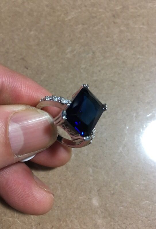 Women’s 7.4ct blue CZ sapphire in silver color size 8