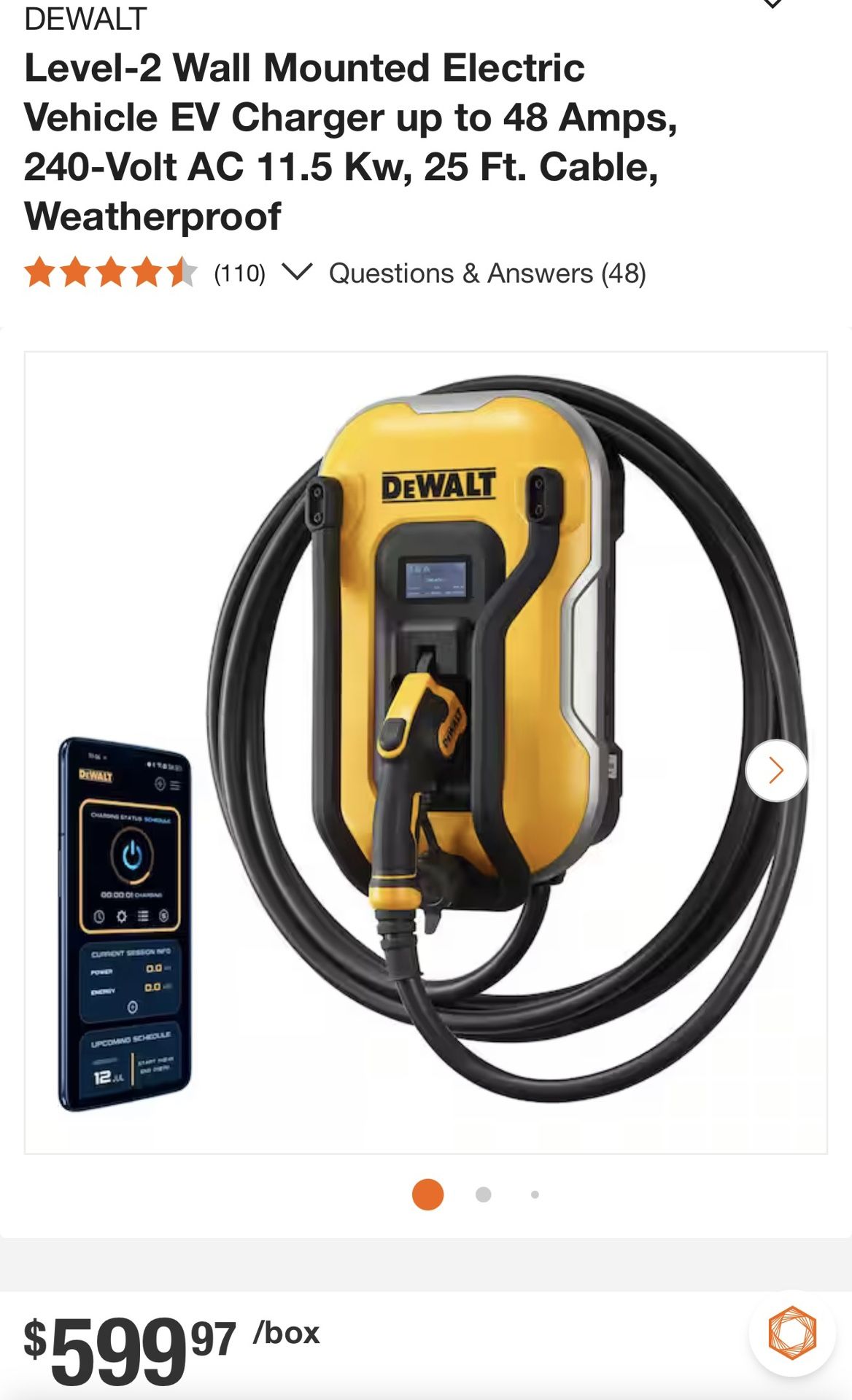 Level-2 Wall Mounted Electric Vehicle EV Charger up to 48 Amps, 240-Volt AC 11.5 Kw, 25 Ft. Cable, Weatherproof