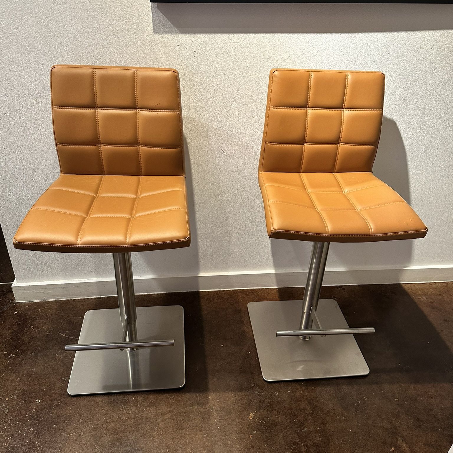 Retail price is approximately $300 per stool on Cantoni’s website ($600 for the pair). Stools are structurally excellent and very comfortable. Minor cosmetic wear on leather (small surface marks, shown in photos). Modern Cantoni design at a significant discount.