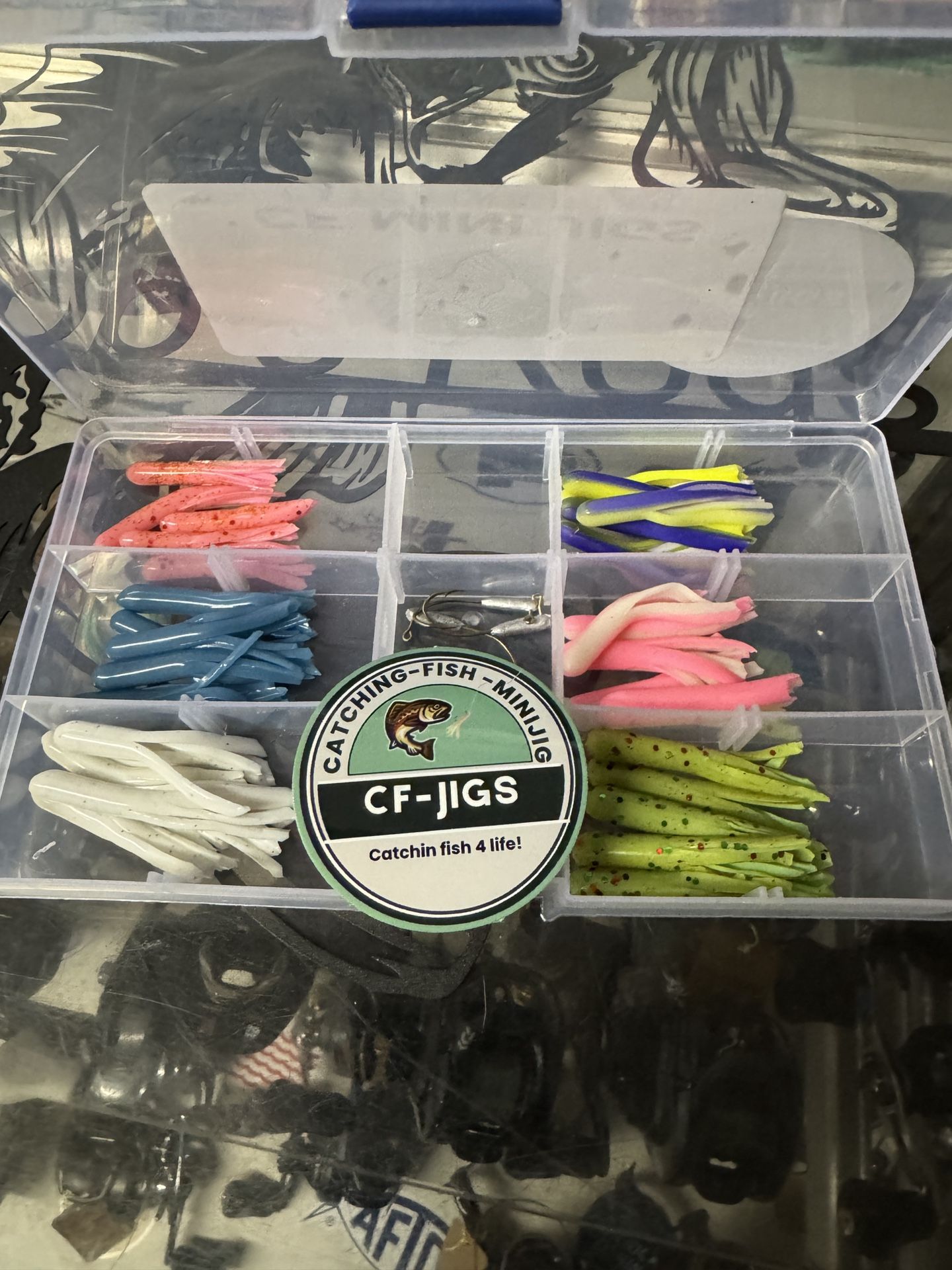 Perfect gift idea for all Anglers. In Murrieta. Try the savage baits scent on them These come with the box four styles and jigs. Perfect for storage in any tackle bag or box. Tight lines.