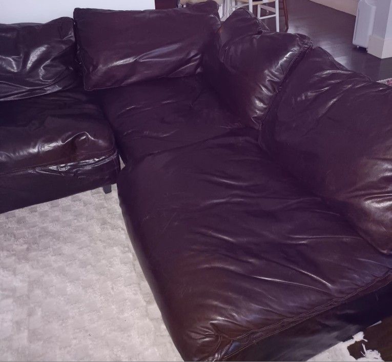 CLOUD COUCH by Restoration Hardware. 4pc sectional in Rich Chocolate Brown Italian Leather with Down filled cushions. Excellent condition, well cared for, without tares, scratches or stains, ready for luxurious lounging. Seat is 30" Deep, Couch is 8'6" Long and 40" Wide. CASH ONLY SALE. NO holds. NO trades YOU must pick it up in The Heights near Downtown Houston.