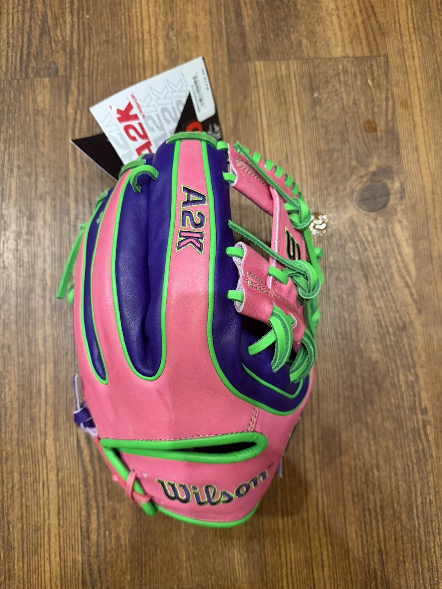 Brand New- A2K 11.5" infielders glove. SuperSnakeSkin Backing: Stronger stitching snd material twice as durable as ordinary leather $219🔥. (Retails for $419) 2025 Wilson A2K 1720 11.5" Infield Glove is the ultimate choice for infielders seeking precision and style on the field. Featuring the iconic 1720 glove pattern, this model showcases a striking teal, black, and pink colorway that stands out. Crafted with Pro Stock Select Leather, it offers exceptional durability, complemented by SuperSkin backing for a lighter feel and moisture resistance. The glove's I-Web design, combined with double palm construction and rolled dual welting, ensures optimal pocket stability and shape retention. With a conventional open back and Dri-Lex wrist lining, players will experience unparalleled comfort and breathability. This is the upgraded A2K not a 2000