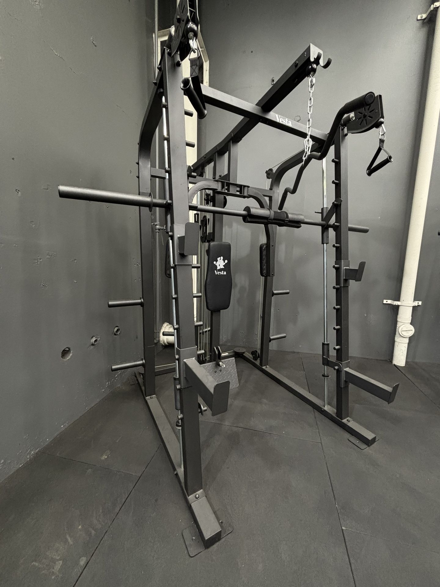 If you are looking to get a home gym that offers a variety. Our SM model is perfect for you. The Ultimate ALL-IN-ONE Machine Smith Machine Squat Rack Functional Trainer Lat Pulldown Weight Bar Preacher Curl/Leg Lever Bench Press Butterfly Arm Accessories Included With Smith Machine One (1) Lat Bar Attachment Two (2) J-Cups Two (2) D-Handles Two (2) Barbell Holders Two (2) Spotter Arms Four (4) Weight Plate Holders One (1) Foot Plate Accessories Included With FID Bench One (1) Adjustable Seat Rest One (1) Height Adjustable Curl Station Note: both the Preacher Curl and Curl Bar are removable One (1) Leg Lever Six (6) Foam Pads (with leather case) on Leg Lever, for leg curls and leg extensions One (1) Weight Plate Holder Adjustable Options (Flat, Incline, Decline) Specifications Weight Capacity SM-2001 Smith Bar: 310 lb Weight Capacity J-Cups: 310 lb Weight Capacity Spotter Arms: 310 lb Weight Capacity FID Bench: 450 lb (User + Weight) Weight Capacity Leg Lever of FID Bench: 150 lb Weight Capacity Weight Carriage (to load weight for cables): 150 lb Dimensions SM-2001 Smith Machine: 49" W x 62" D x 85" H Dimensions FID Bench: 73" L x 19" W x 36" H Product Weight SM-2001 Machine: 313 lb Product Weight FID Bench: 75 lb Let us help your create your home gym!! New in box! Click our profile for more gym equipment listings! Credit Cards / Cash / Venmo / Zelle / Financing Available! Visit our showroom to view all of our all of our other products in person! Open 7 days a week!