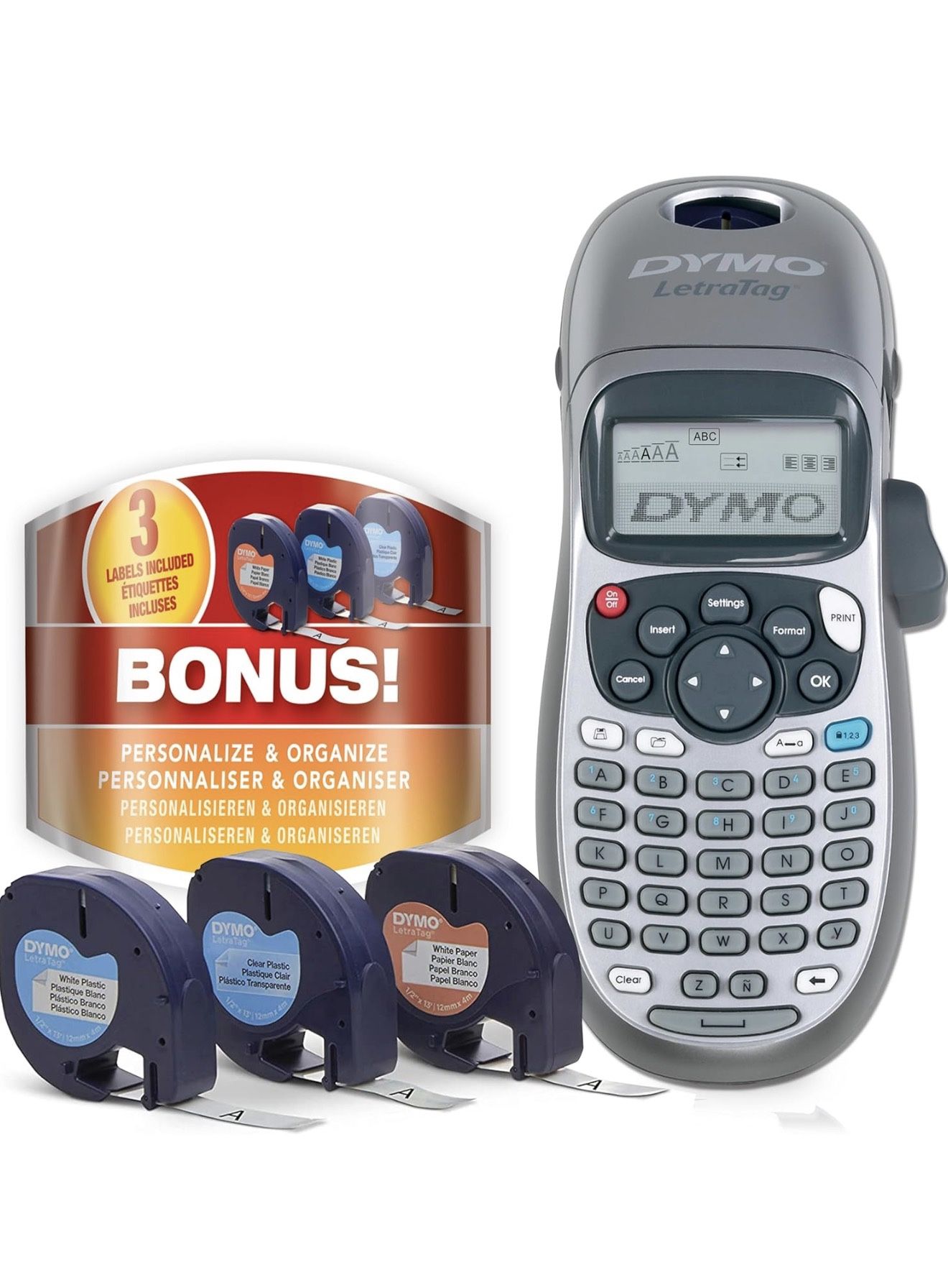 Label Maker Machine with Tape - 100H LetraTag Handheld, Comes with 3 LT label tapes. Great for Home & Office Organization DYMO