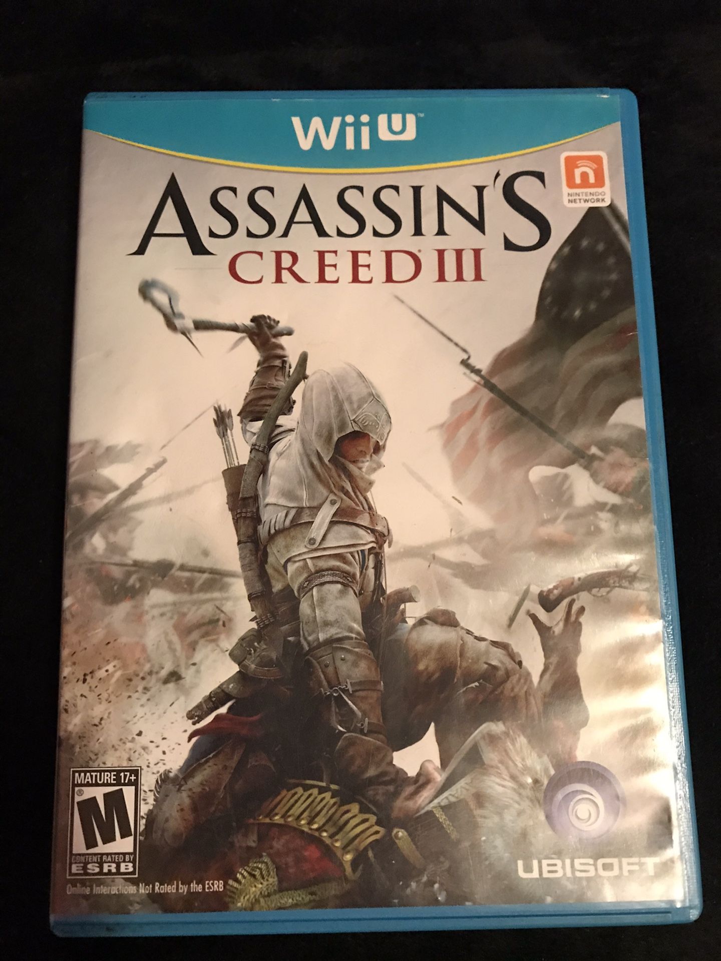 Assassin’s creed III Has an intriguing story with several hours of fun Made by Ubisoft Rated M for mature 17+ $10 obo