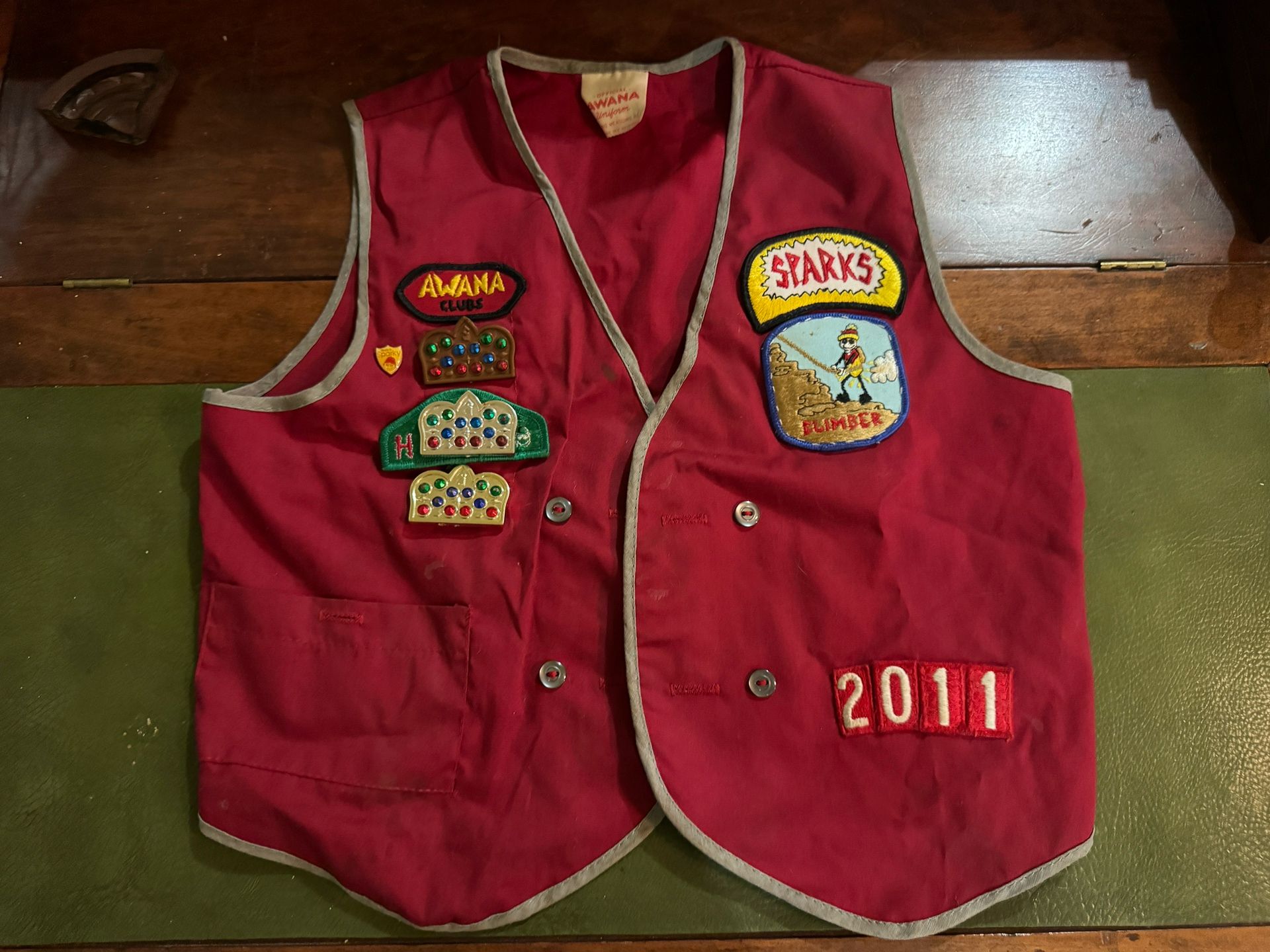 Super Vintage - Awana - Sparks Red vest With Awards And Pins - Sparkees Kids