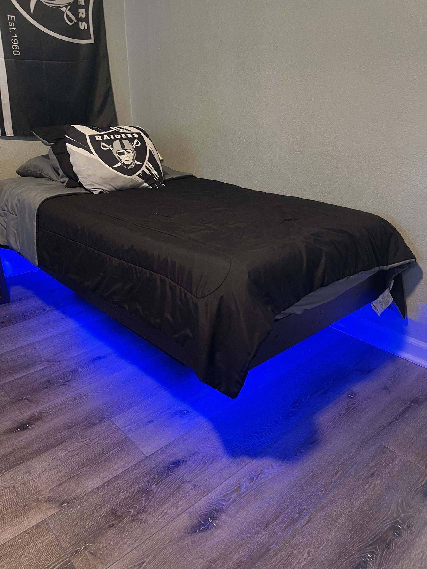 Floating Twin Bed comes with memory matters, LED light controller and multi color options for the LED lights come built $400 obo
