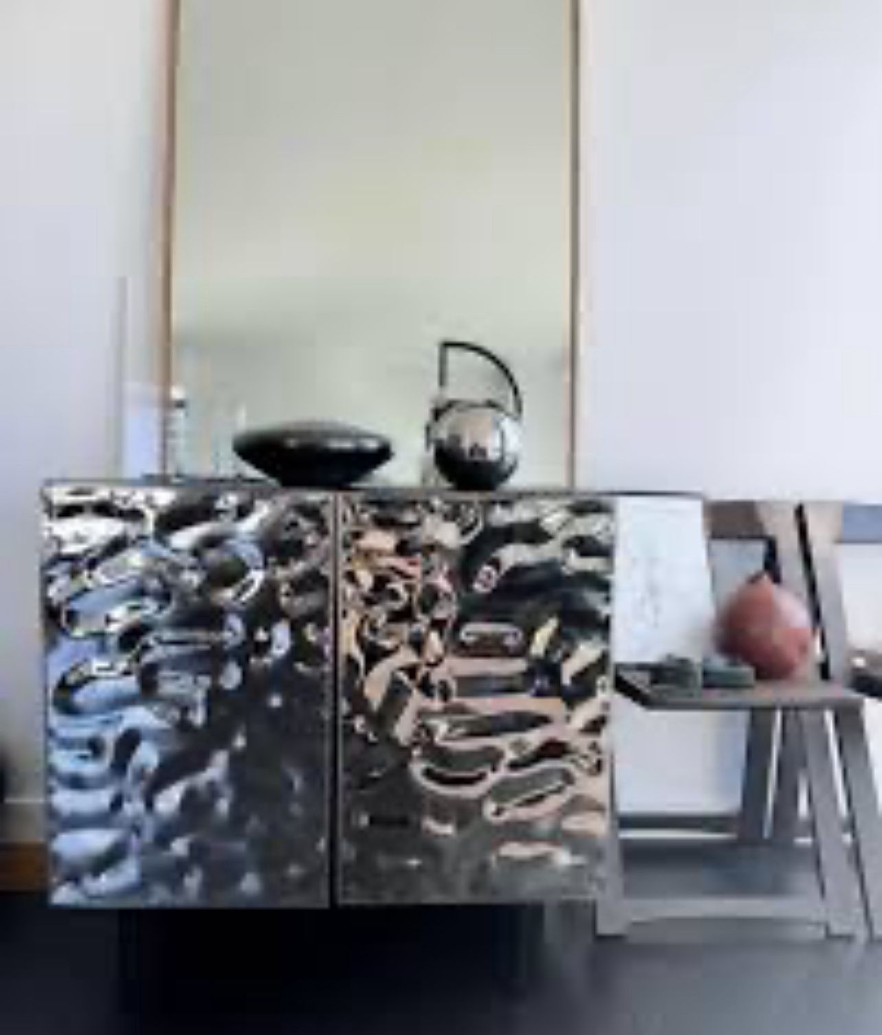 Modern luxury Cabinet with 2 Doors Stainless steel wave polished door, Storage Cabinet for Living Room, Entryway, bar, coffee station or Kitchen Dining Room Cost me around $600 (reference pic) No longer need it In excellent condition. Overall dimensions: 30.71 inches high x 31.5 inches wide x 15.75 inches deep * Material: MDF+Ash Willow+Stainless Steel * Assembly Required * Care: Dust with a soft, dry cloth. For more details look through all the pics.