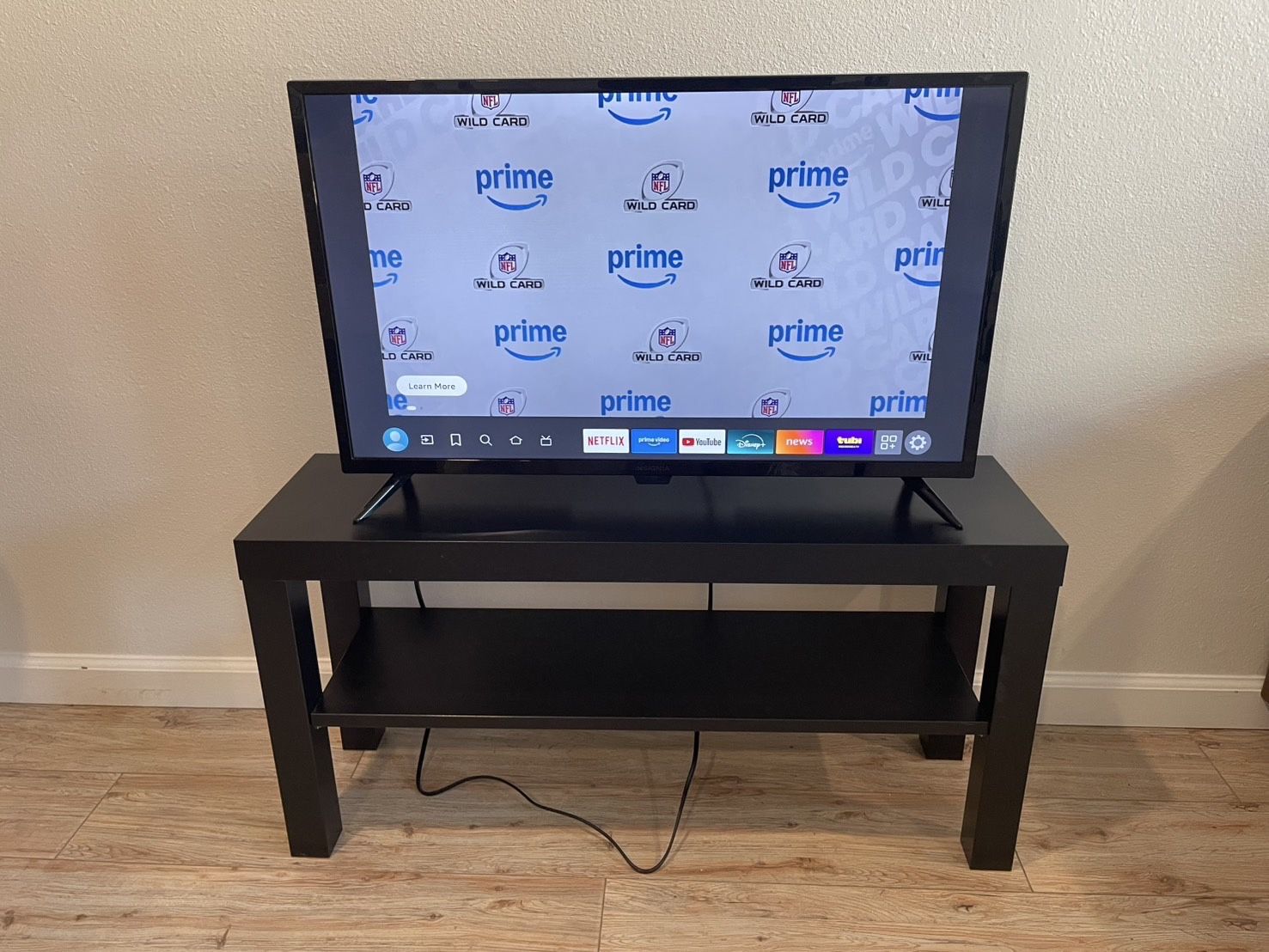 Selling an Insignia 32" LED Smart TV and a black TV stand/media console as a bundle. Both are in great condition and work perfectly. TV details: Brand: Insignia Size: 32" Model: NS-32F202NA23 Smart TV with streaming apps (Netflix/Prime Video/YouTube, etc.) Stand details: Black TV stand with a lower shelf (great for a console/router/storage) Includes TV + stand + power cord + remote.