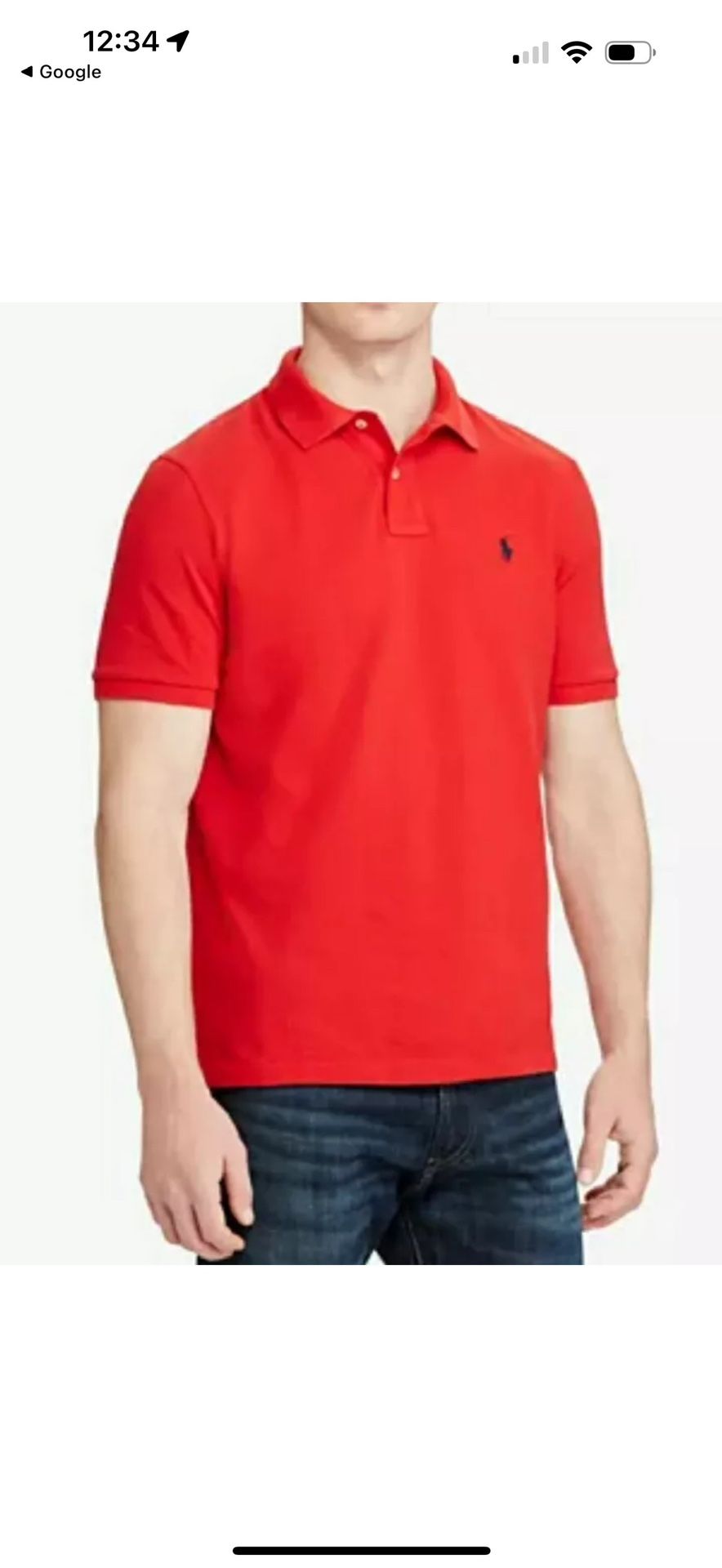 Like new! 100% cotton. Color is a red orange. Something red and orange laid on top for comparison. Elevate your style with the Polo by Ralph Lauren Men's Red Polo Shirt. Crafted for comfort and elegance, this shirt is perfect for any occasion