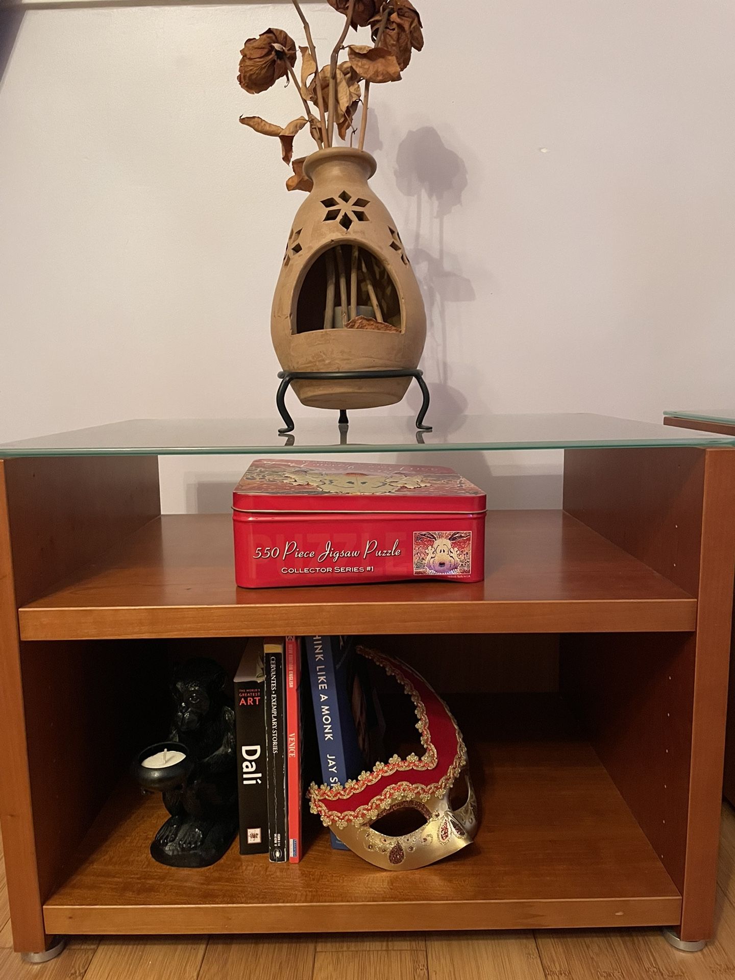 Nightstand/ bookshelf made of wood and glass. New/well kept no scratches. About H16’xL22’xD14’. Boconcept danish design. Beautiful furniture..