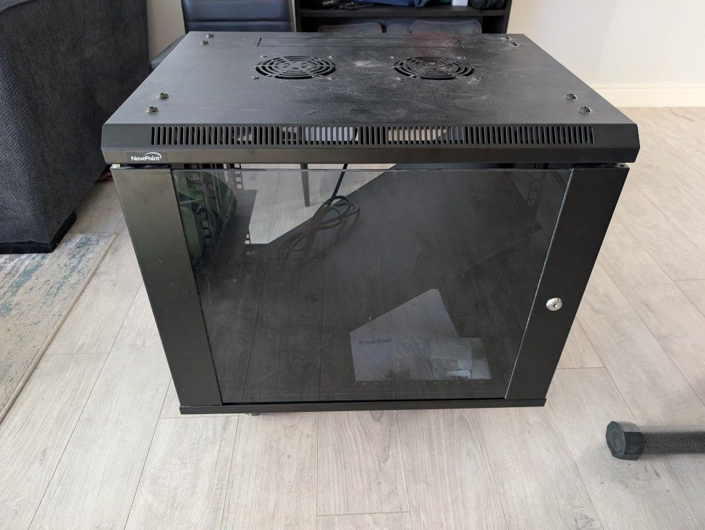 Navepoint 9U Deluxe IT Wallmount Cabinet Enclosure 19-Inch Server Network Rack with Locking Glass Door - Black Opened but never used. Comes with all keys, manual, and parts. Has fans and everything. Would be a great cabinet for a homelab. Was $320 new.