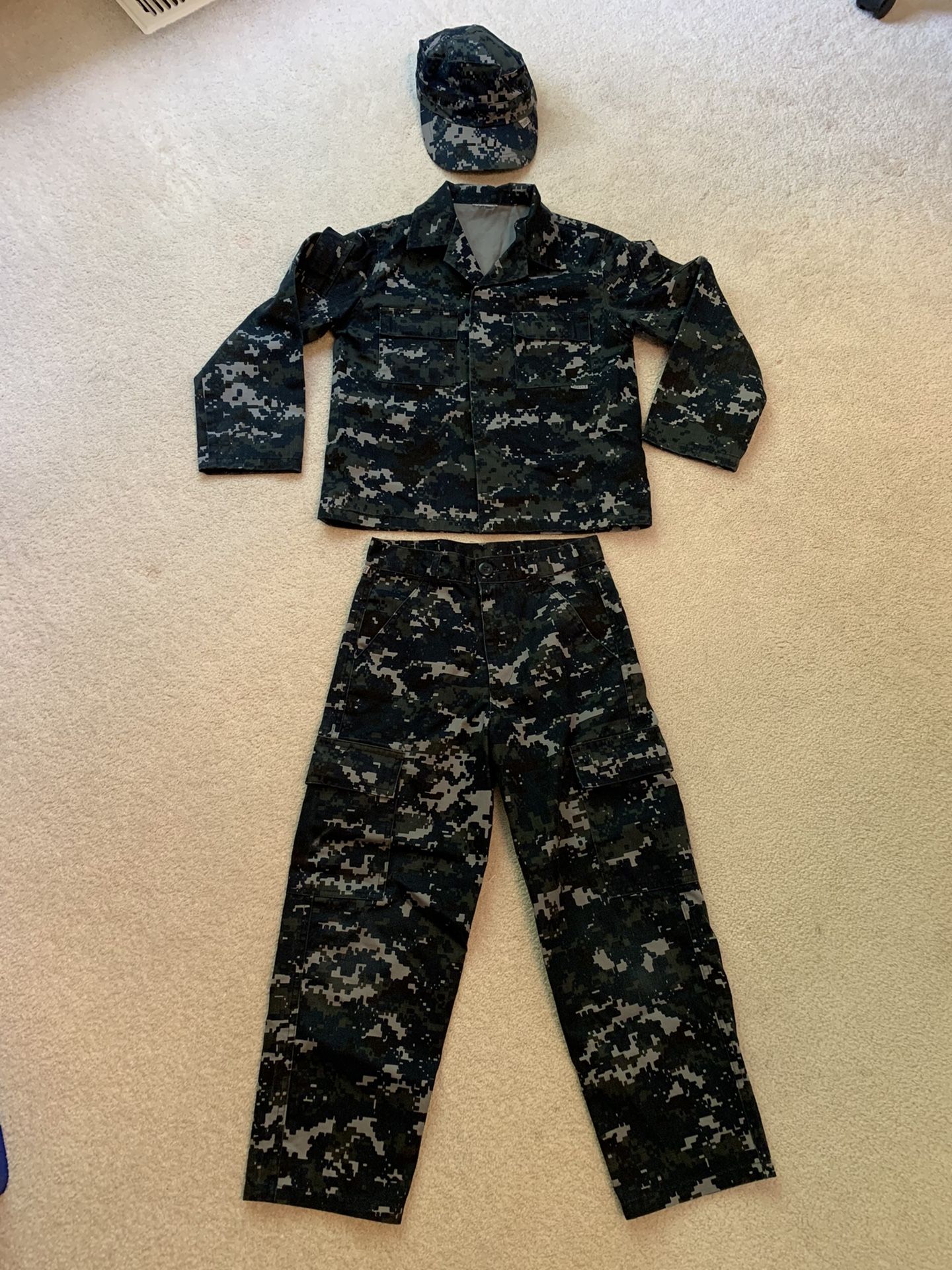 Purchased this on base, worn only once. Boys size 6, comes with top, pants, and cap. Authentic outfit, not cheap material/costume