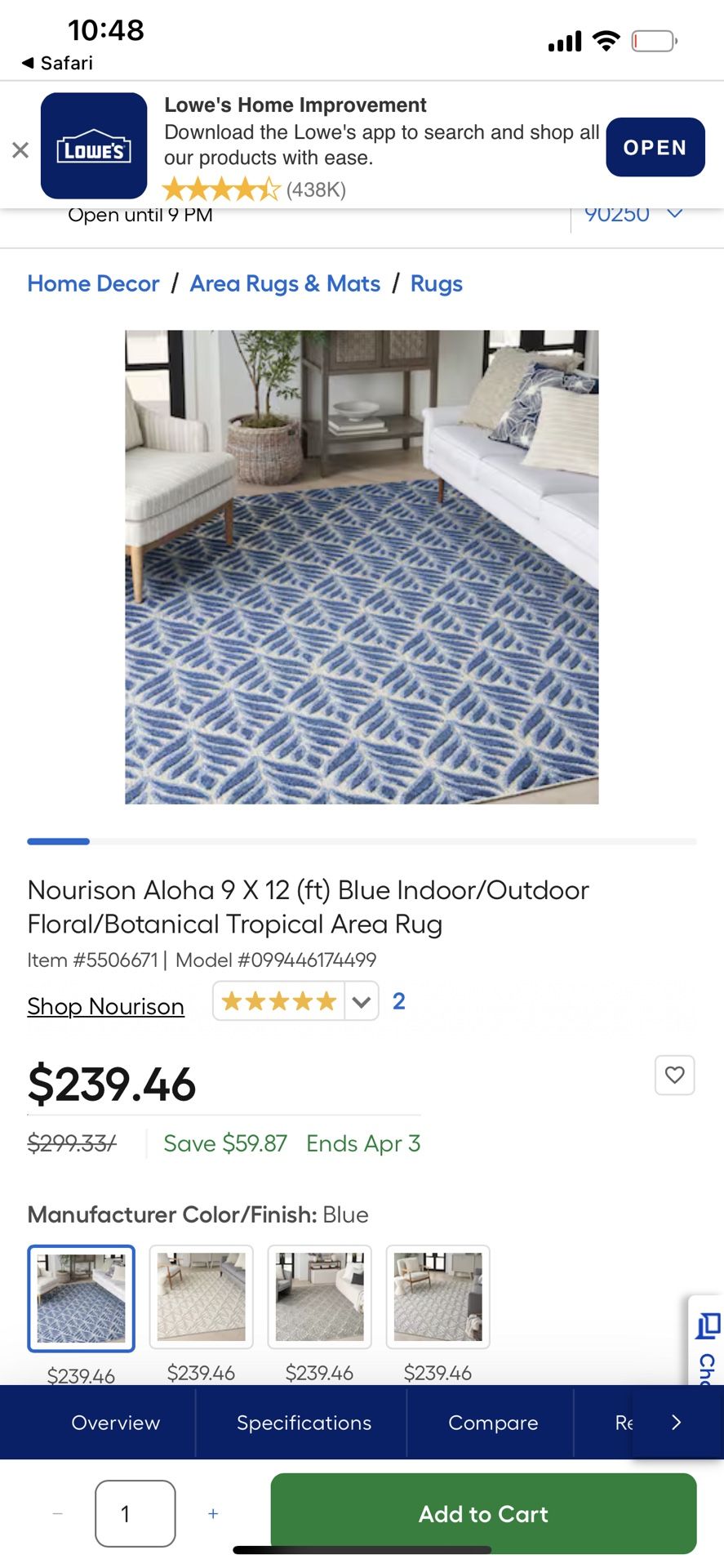 Nourison Aloha 9 X 12 (ft) Blue Indoor/Outdoor Floral/Botanical Tropical Area Rug