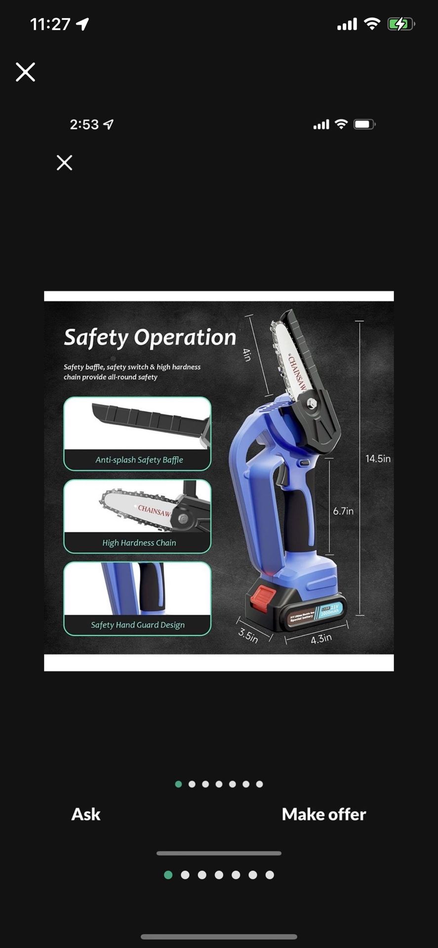 Mini Chainsaw, 4-Inch Battery Powered Electric Chainsaw Cordless with 2 Batteries 2 Chains, 21V 2000mAh Rechargeable Handheld Mini Chain Saw with Secu