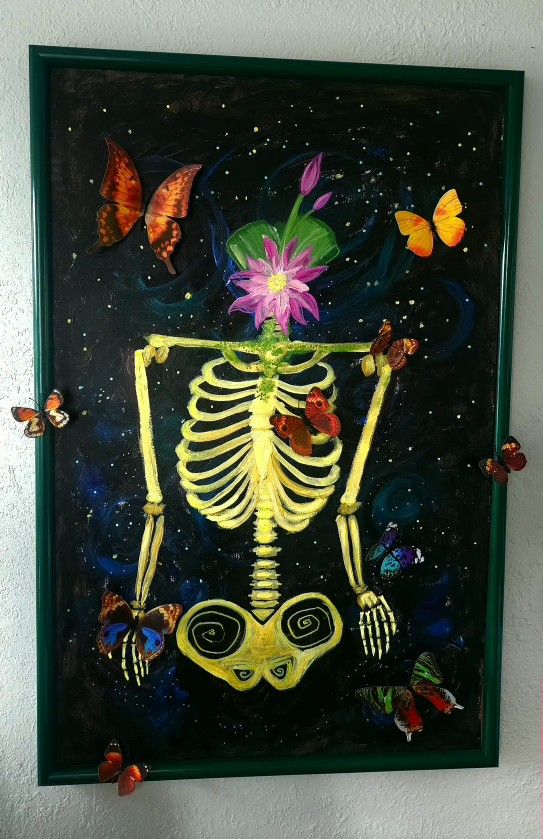 Acrylic Artwork with butterfly decor. Glow in the dark paint looks great under LED lighting. Price Negotiable