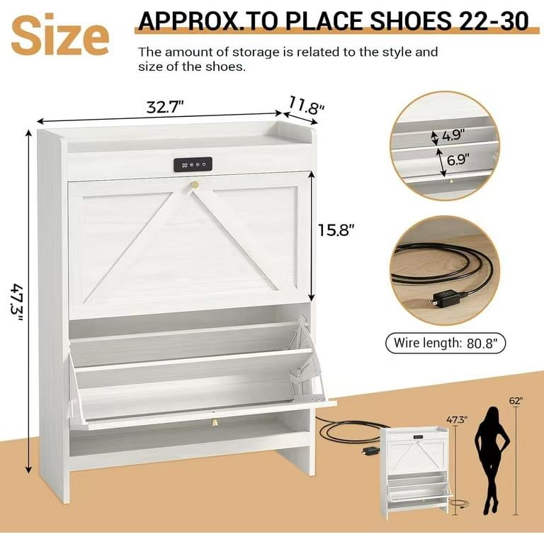 Deodorizing Shoe Storage Cabinet with 2 Flip Drawers,Shoe Rack Cabinet with 9 Adjustable Flip Stand, Freestanding Hidden Shoe Organizer for Entryway Hallway Foyer, Walnut White 🙏pay $75.00 + sale tax by cash or card in person (final sale). ✌️Not Accept price negotiation through thIs OfferUp App ; The price is as marked ✌️Pick up at showroom : zip code 80231 or 80223 or 80241 depending on item ✌️Hour : from 10 am to 7 pm(Monday CLOSE) ✌️Pick up only, No delivery , No shipping ✌️please stop by ASAP after all info(including address) provided OR ✌️double confirming “available or not” again if the address info is already provided for days.. 🙏can NOT relocate inquired item to other showrooms but you can wait to see if it is available in other showrooms (current item location zip code can be distinguished by 🥨😀✌️) ✌️ ALL furniture are new and not used at all. However, due to few careless or overweight handling during shipping, transport or assembly, few of them will have mild scratch or dents. So does some inventories in the box. We try our best to photo those in pictures after assembling them. The price is adjusted based on those issue that we notice. ✌️ Item sold as the picture (it is assembled ) or it will be mark as in the boxes 🙏NO RETURN, NO REFUND, NO EXCHANGE