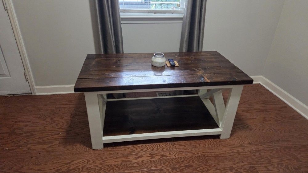Good condition solid wood coffee table. I am able to deliver if you are within 20mins of asheboro for an additional fee. 2ft tall x 27in deep x 52in wide