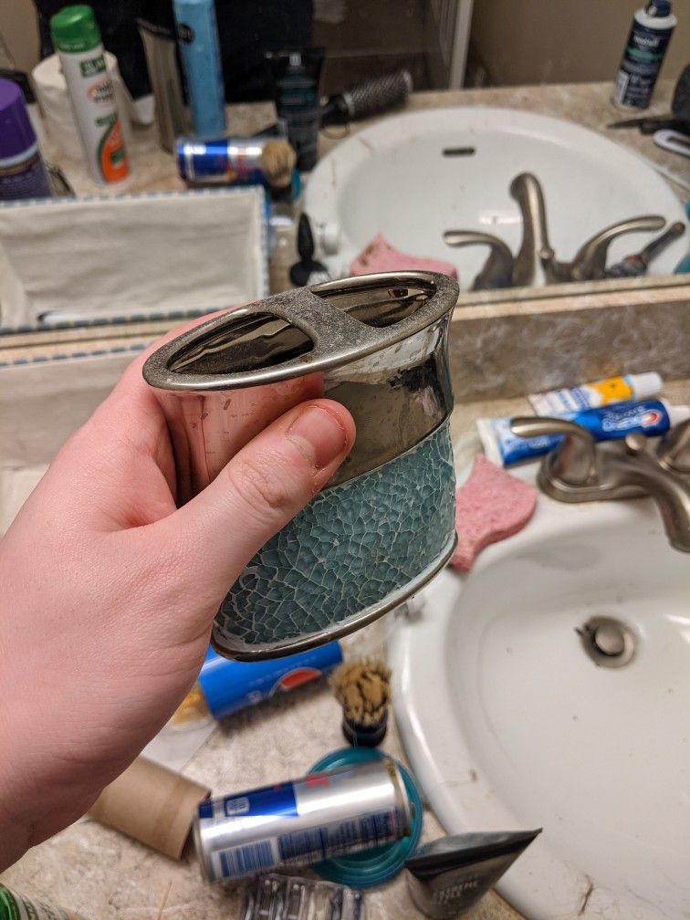 NEED GONE: WHOLE BATHROOM SET; TOOTHBRUSH HOLDER, TWO SHOWER CURTAINS, TWIN GARBAGE PAILS, TWIN STORAGE BINS