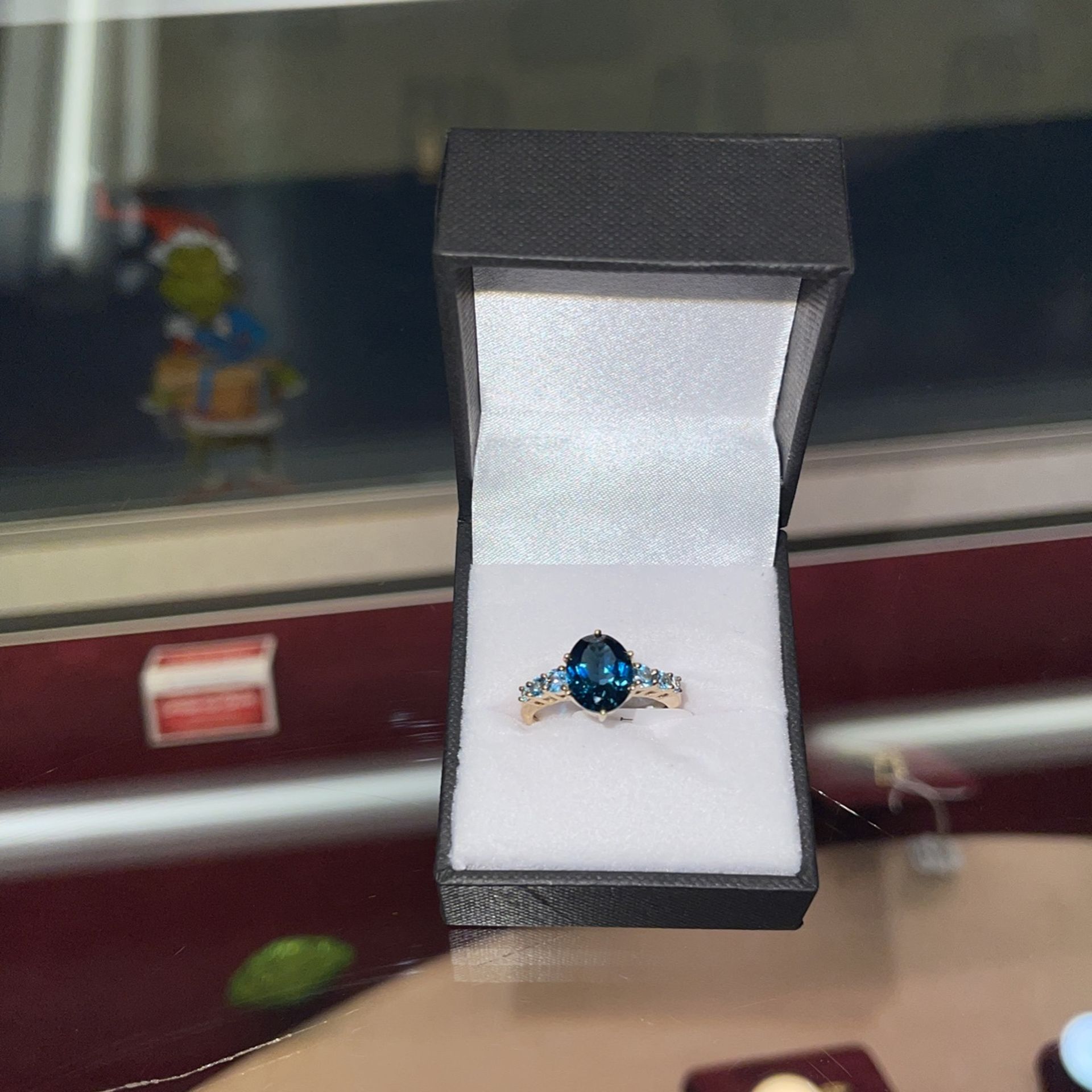Beautiful blue stones!! Size 7 1/2 $16 down for layaway with 3 months to pay off Come in and check out our holiday sale!! Ask for Cassandra #2239
