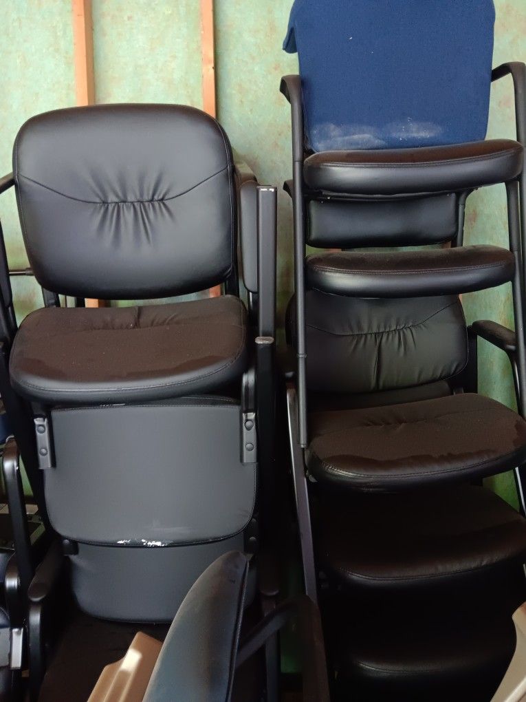 Black reception area, waiting room chairs. Almost new condition. 3 different types. 1 type with padded armrest, 1 type without padded armrest, 1 type with 'sled' bottom. Can be used for school, church, medical/legal/professional office, events, etc. Have many, make offer.