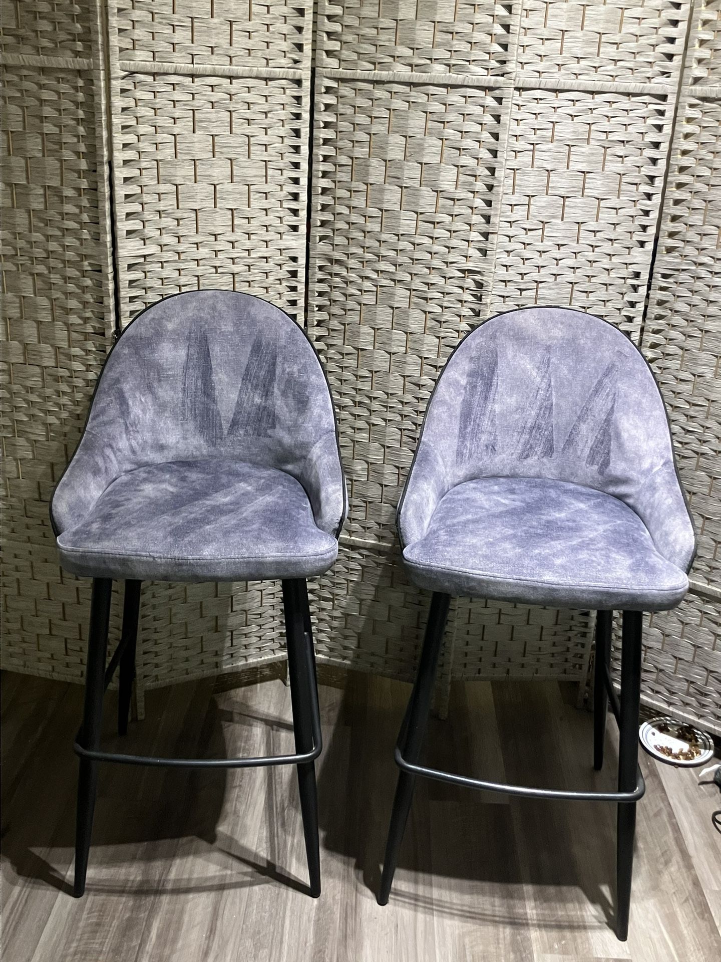 Set of two light grey barstools in excellent condition seat is 30” tall and the back is at 41” x19”wide black metal legs and frame asking listed price obo