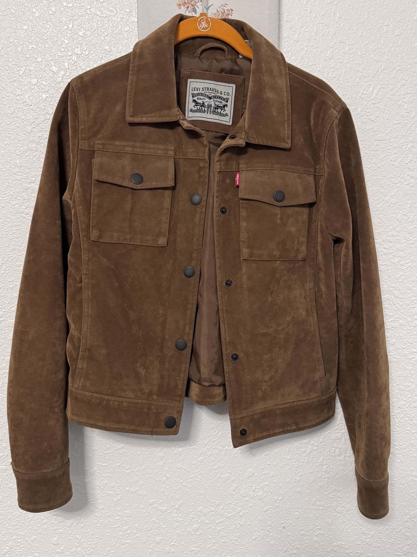 Gently worn Levi’s Jacket, like new. Teen / Women’s Size XS trucker jacket, snap on buttons, Faux suede cute everyday Levi’s jacket. Great for country concerts. Serious buyers please. Thank you!