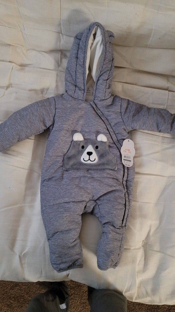 NWT - Wonder Nation Baby Bear Ear Fleece Plush Snowsuit size 0-3 months