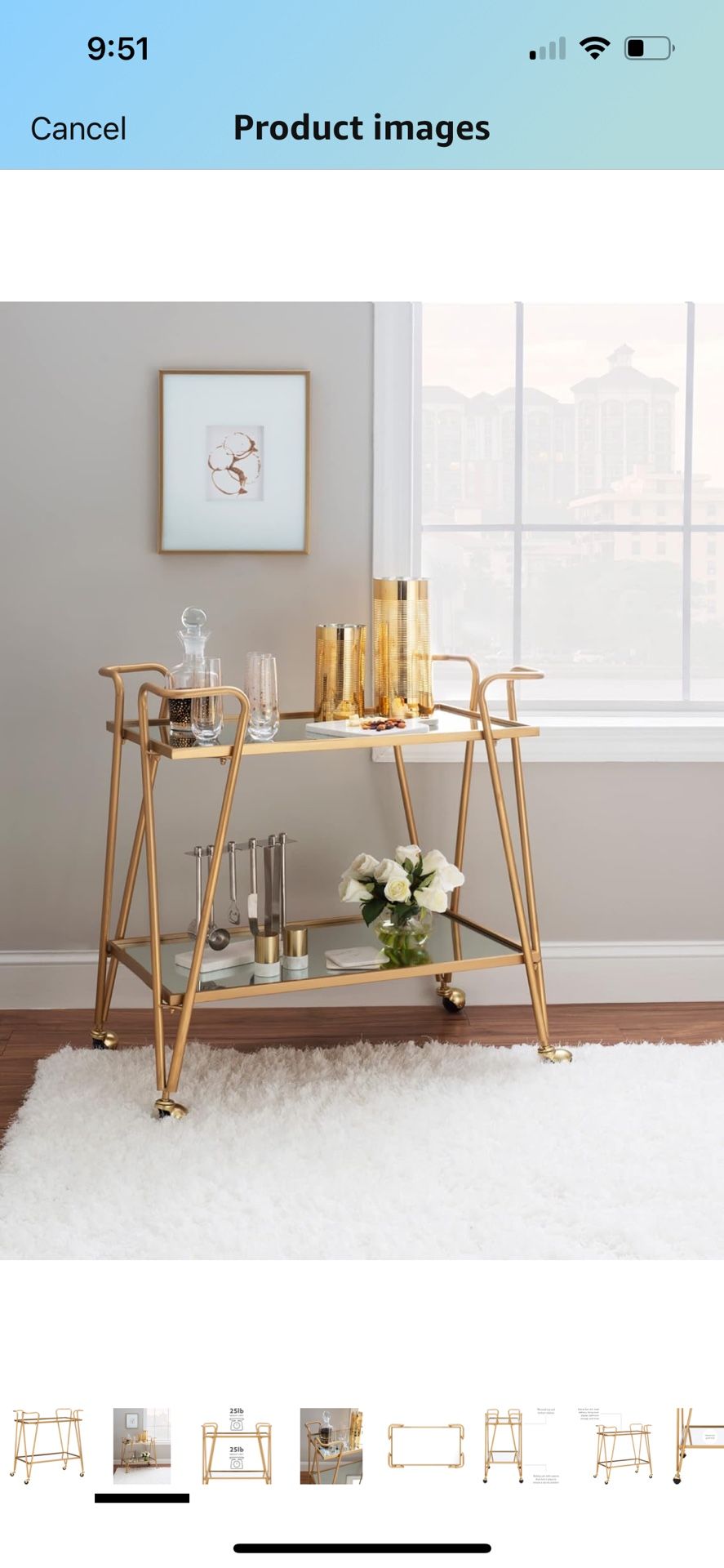 Mirror Gold Bar Cart ($105 Each Retail) Have 2