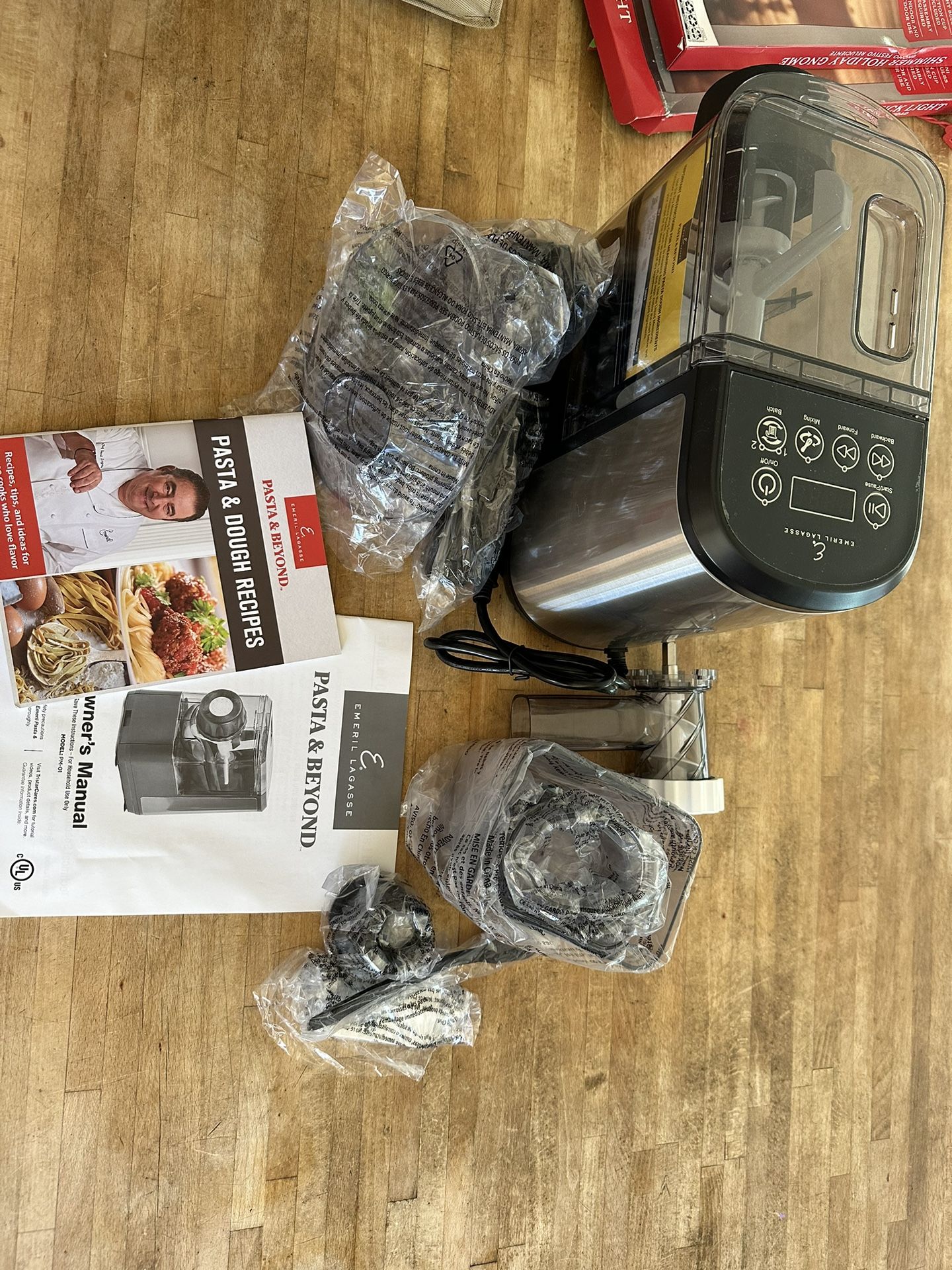Emeril Lagasse pasta and beyond. Pasta maker and juicer. Brand new, never used. Comes with manual and recipe book