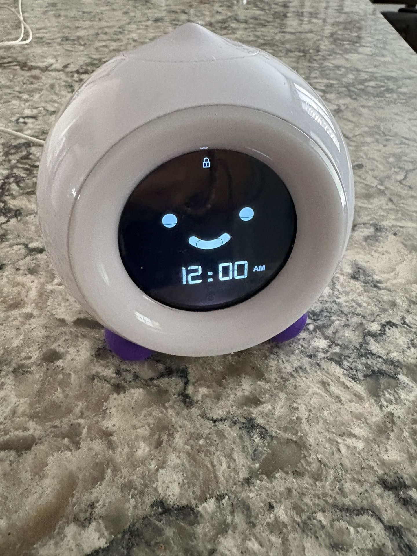 Little Hippo brand Comes with AC adapter and batteries Has a time to rise function, nap function and time to sleep function Helps with naps & bedtime (reminds kids to stay in bed until the light turns green) Has lullabies and white noise for sleep Worked great for our girls. Pick up only, if post is up item is available.