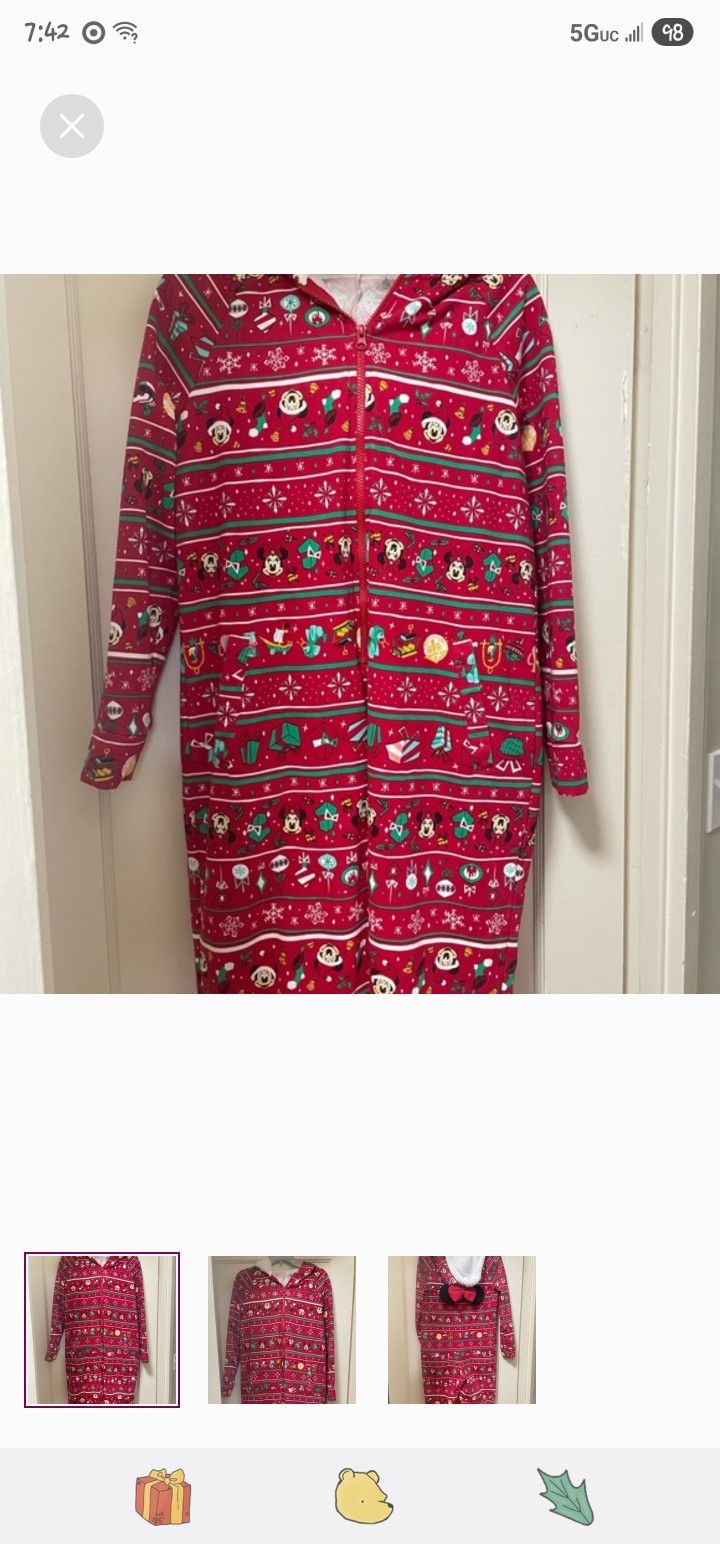 Please Read Before You Message Me *Disney Red Holiday Pajama Festive red onesie with Disney characters. Features holiday patterns and hood. Cozy and fun for sleepwear. new without tag, Size M * non-smoking Pet free home *Price is firm. Any less will be ignored! *Please Dont come and make another offer. I will not accept. Only what i what i ask for. *Please do not waste my time saying that you're going to pick it up, but you do not show up. Please Let Me Know! I am okay with changing the day long, so you let me know. Don't keep me waiting! Dont like Fakers. I hate waiting for people dont show up! You are wasting my time. It takes time to look for the item. Dont ask for my address until you are on your way. My location said my page. Please be polite! Thank you! *Price Firm *Pick Up Only *No Delivery *Final Sale *No Trade *Serious buyers! *No Fake Ones. I will block you if you don't show up! *I do shipping! I always ship the next day purchased