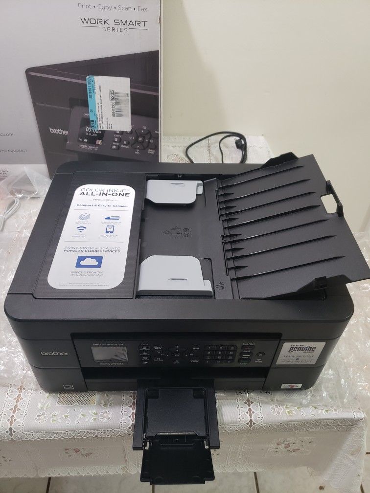 Semi-new Brother printer only used for a project about 6 months comes with black ink, it prints, copy, scan and fax, comes with original box and accessories also will add two packages of paper with roughly 70% of paper left in them, please check pictures for details. Any question just ask. Se habla Español.