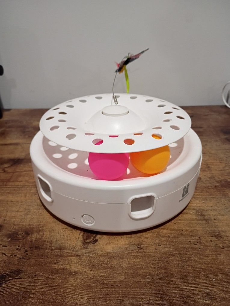 Potaroma Cat Toys 3in1 Automatic Interactive Kitten Toy, Fluttering Butterfly, Moving Feather, Track Balls, Dual Power Supplies, USB Powered, Indoor Exercise Kicker (Bright White).