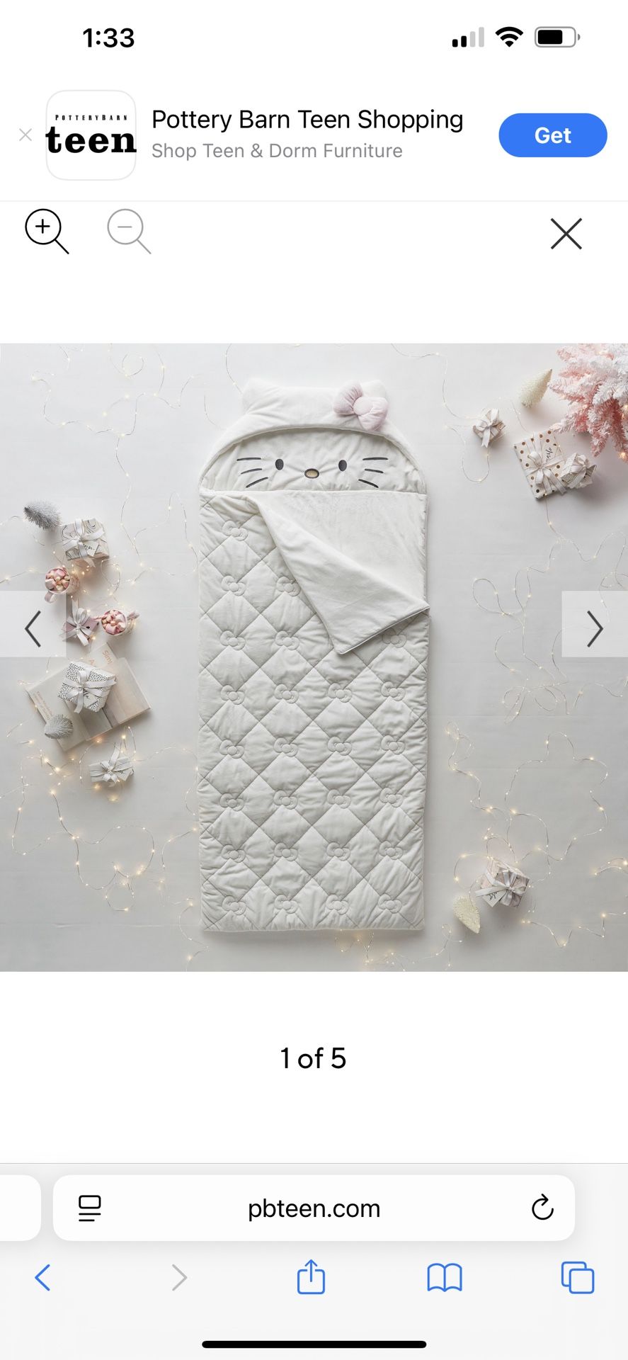 Pottery Barn Teen hello Kitty Sleeping Bag