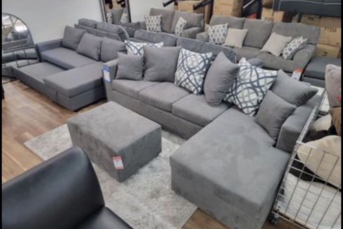 New USA Made Gray Sectional And Ottoman Sofa Couch